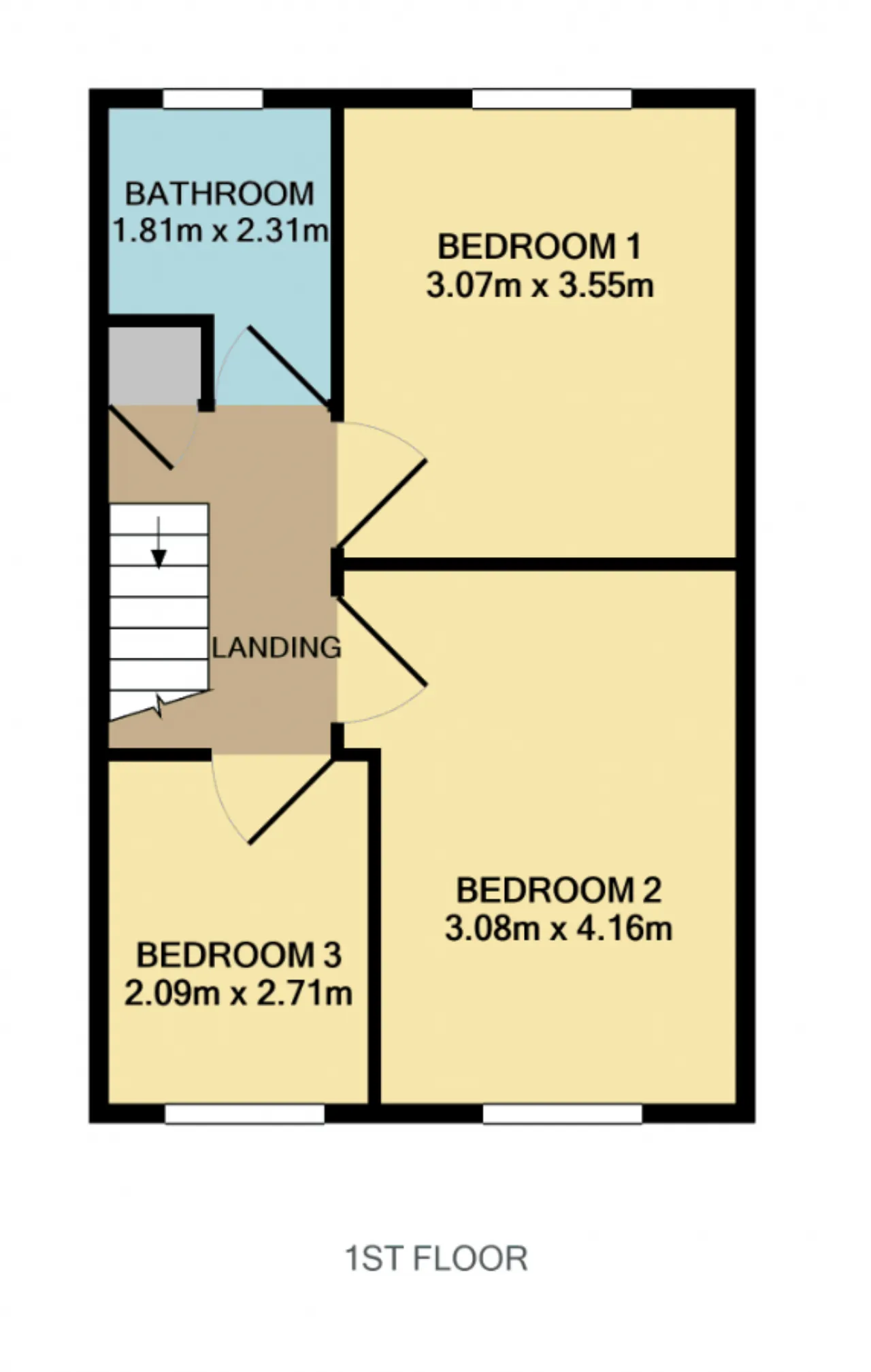 Bedroom 2 4.16m x 2.78m Carpet flooring and fitted wardrobe.