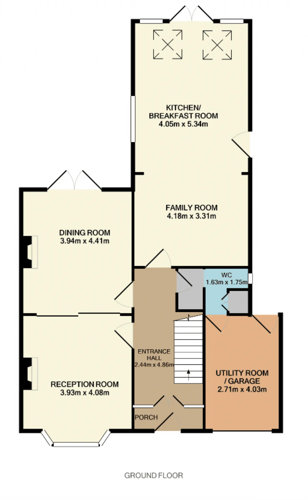Utility Room/Garage 2.71m x 4.03m Selection of wall and floor mounted units, fully tiled walls and floor, stainless steel sink, Miele washing machine, Miele dryer, Belling fridge. Door to side passage.