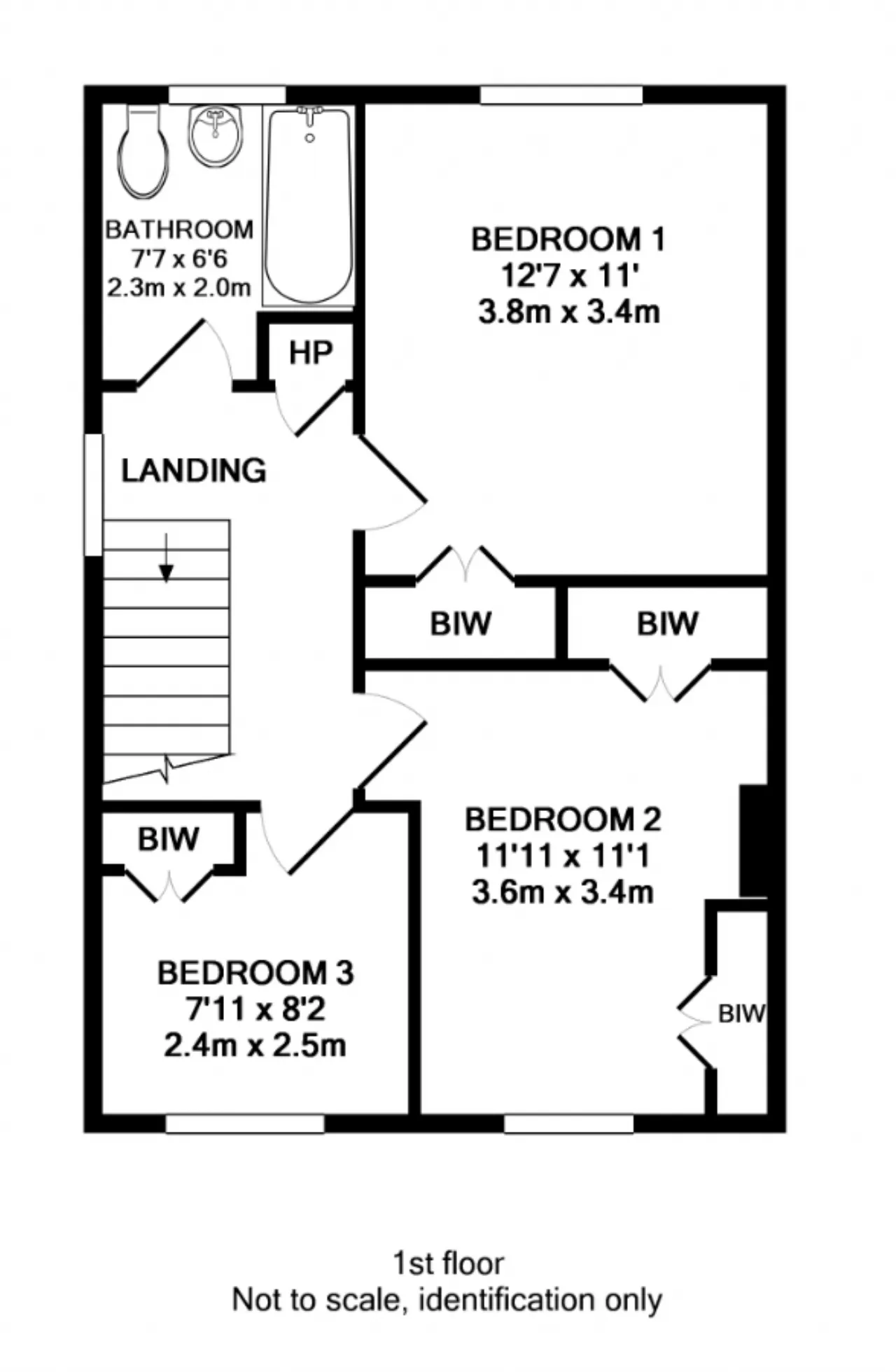 Bedroom 3 2.5m x 2.42m Is a single room to the front with solid oak flooring and built in wardrobes