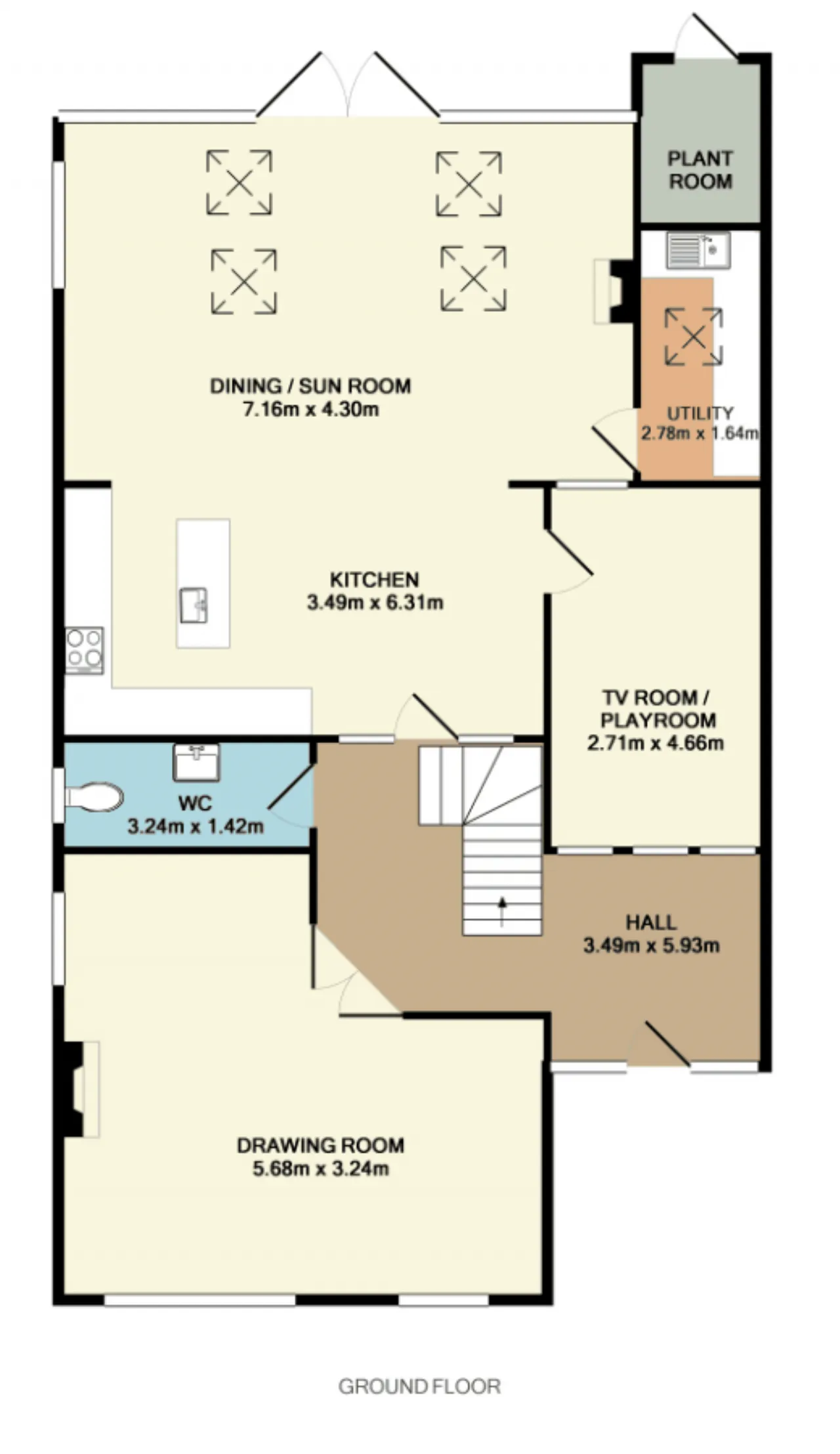 TV Room/Playroom 4.66m x 2.71m Accessed off the kitchen, a cosy room to watch tv or keep an eye on young children at play.