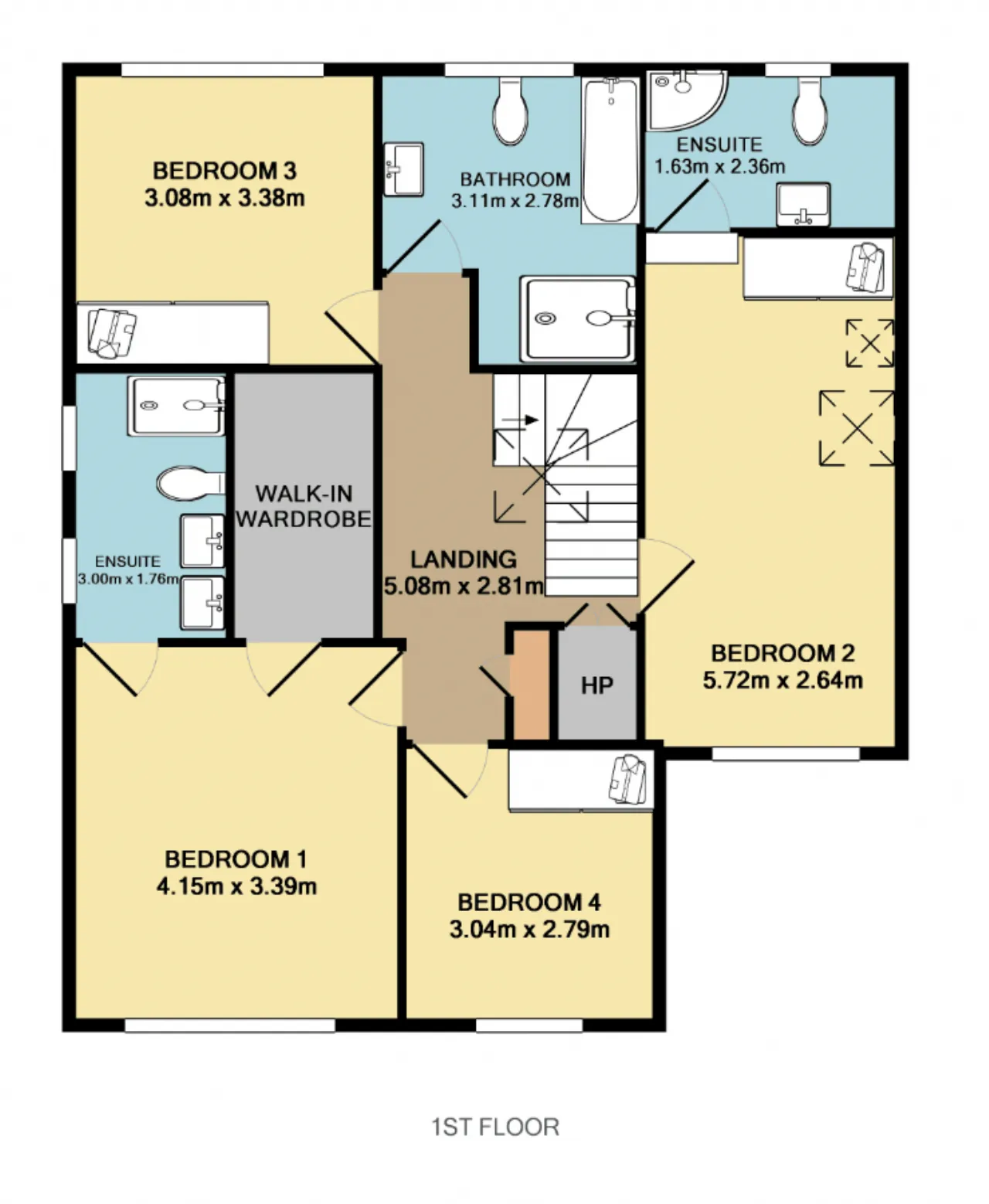 Bedroom 1 4.15m x 3.39m Is a beautiful double room, with views directly to the green in front of this home. With the same oak flooring, recessed lighting and coving. A luxurious ensuite and walk in wardrobe will appeal.