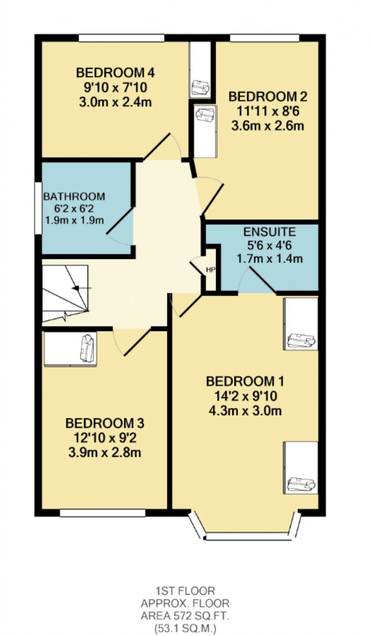 Bedroom 4 2.4m x 3m Spacious single bedroom to the rear of the property, with built in wardrobes.