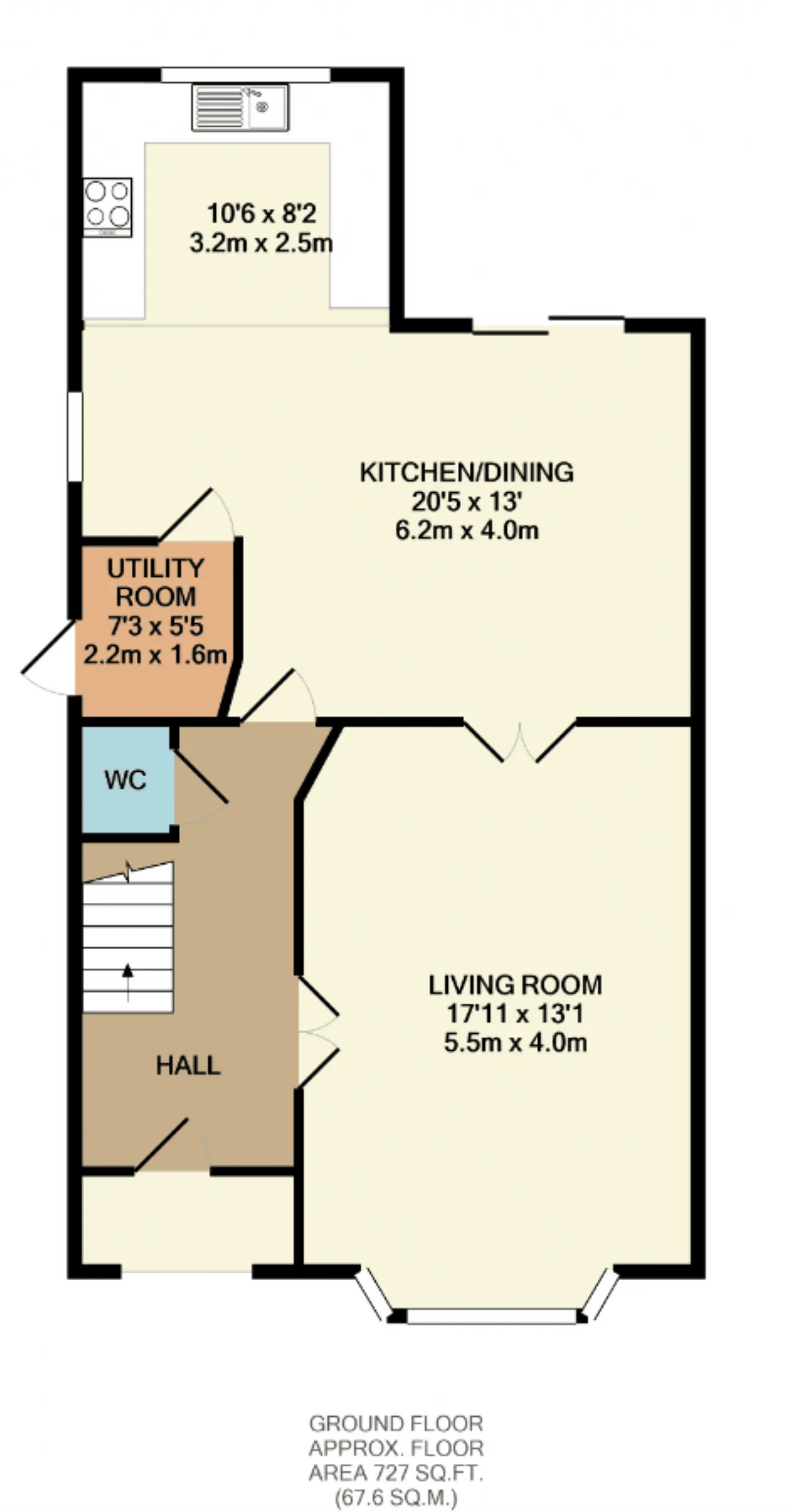 Kitchen/Dining 3.95m x 6.22m This very spacious, open plan area extends the full width of the property. Timber flooring in the dining meets tile effect linoleum in the kitchen. While glazed double doors lead out to the bright rear garden. In the kitchen there is a wealth of wall and floor storage units and countertop space.