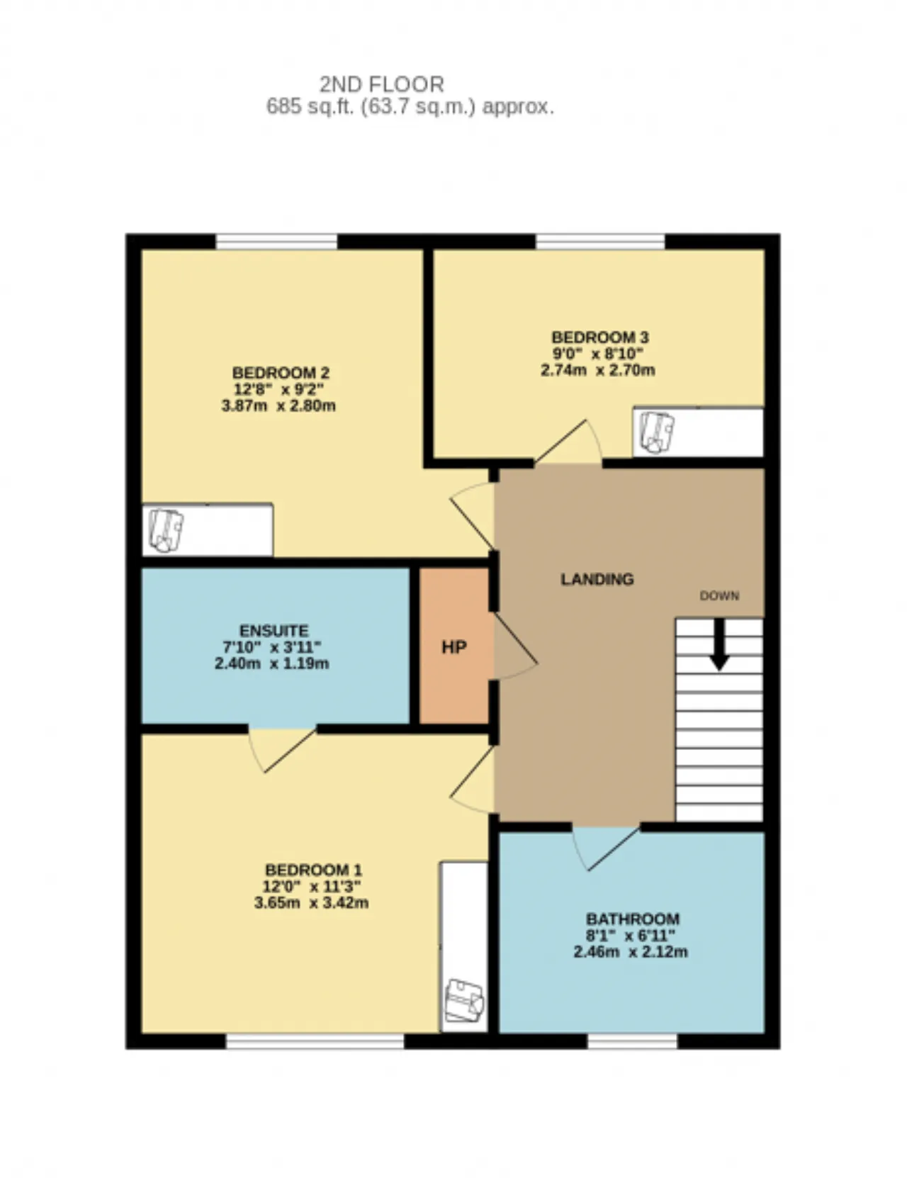 Bedroom 2 3.87m x 2.80m Located to the rear on the top floor, this well-proportioned double bedroom features laminate flooring, a built-in wardrobe, and a large picture window overlooking the rear garden.