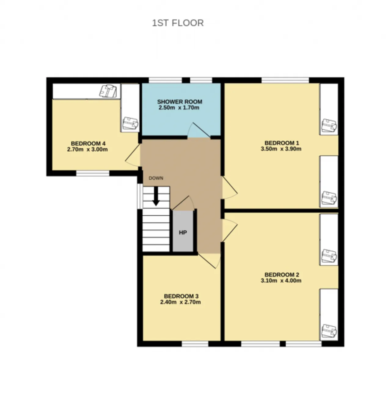Bedroom 3 2.40m x 2.70m Generous single bedroom located to the front of the house, carpet flooring