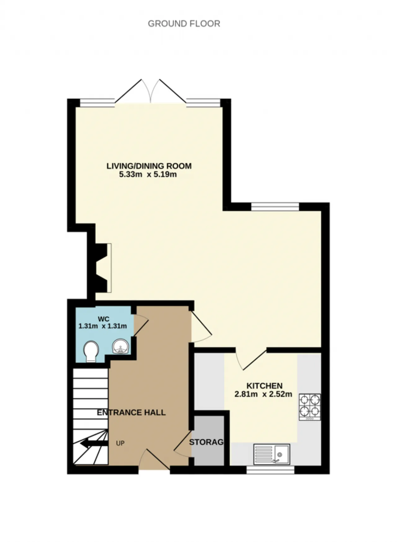 Guest WC With tiled flooring, situated under the stairs. Comprises of a wc and wash hand basin.