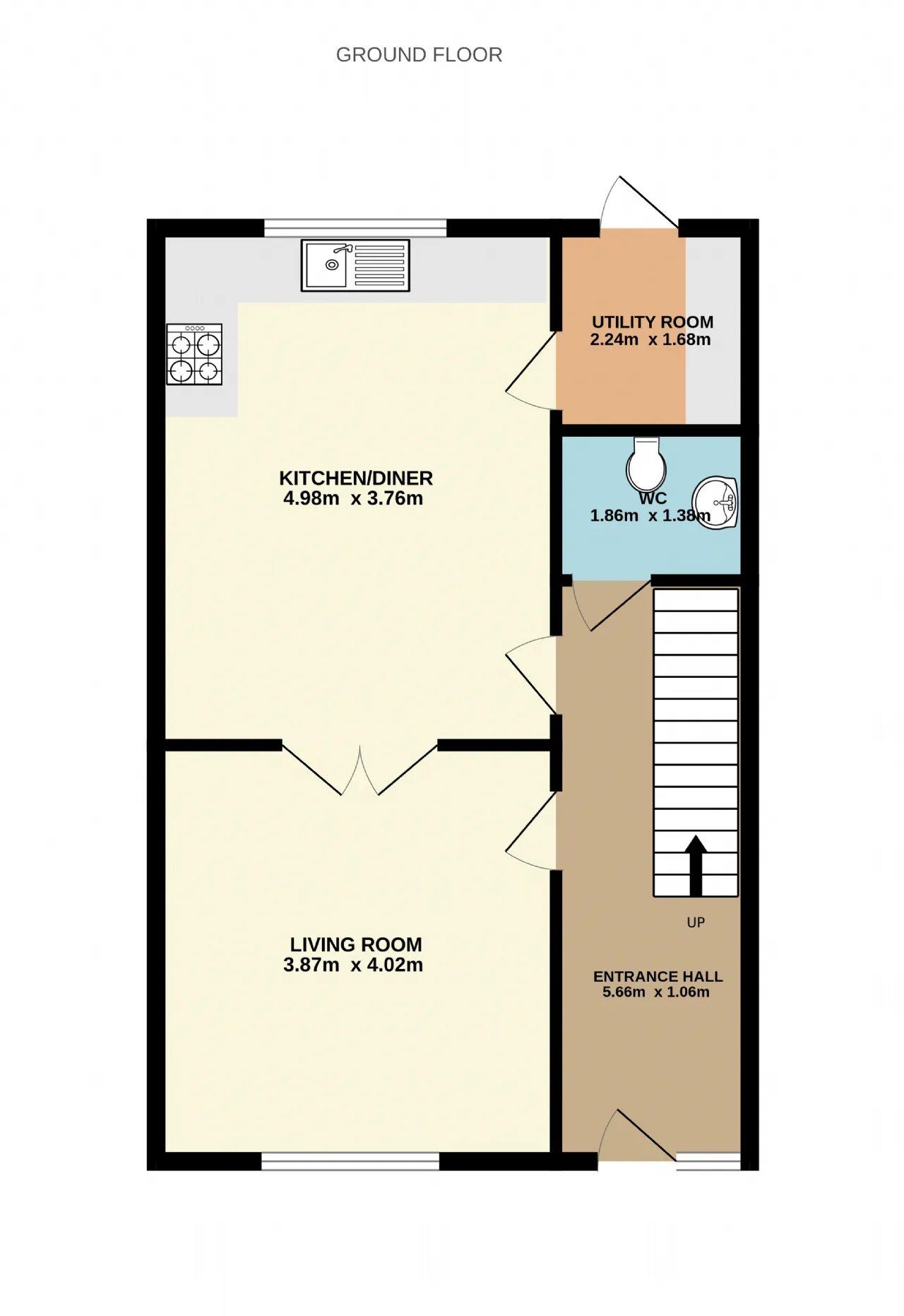 Measuring 106.1 sq.m/1,142 sq.ft approx., the property offers well-proportioned living space throughout. At ground floor level, the accommodation briefly comprises of the entrance hall, guest WC, a tastefully decorated living room and a spacious, open-plan kitchen/dining room with a separate utility room. Upstairs are 2 double bedrooms, both with fitted wardrobes and main ensuite. A generous, single bedroom and a family bathroom complete. The house also has the benefit of having stira access to the attic.
