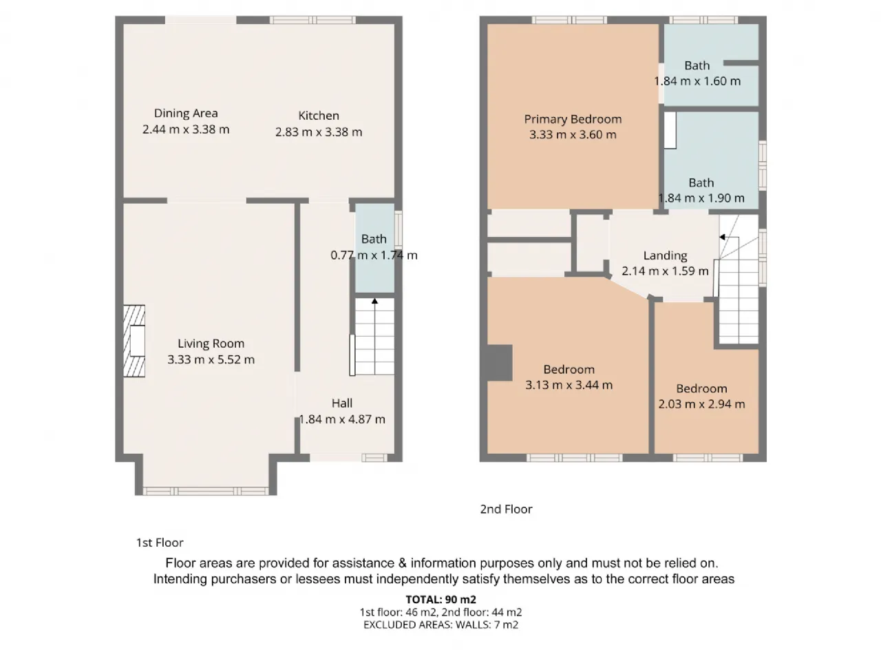 Family Bathroom 1.95m x 1.85m tiledflooring with w.c., w.h.b & tiled around bath
