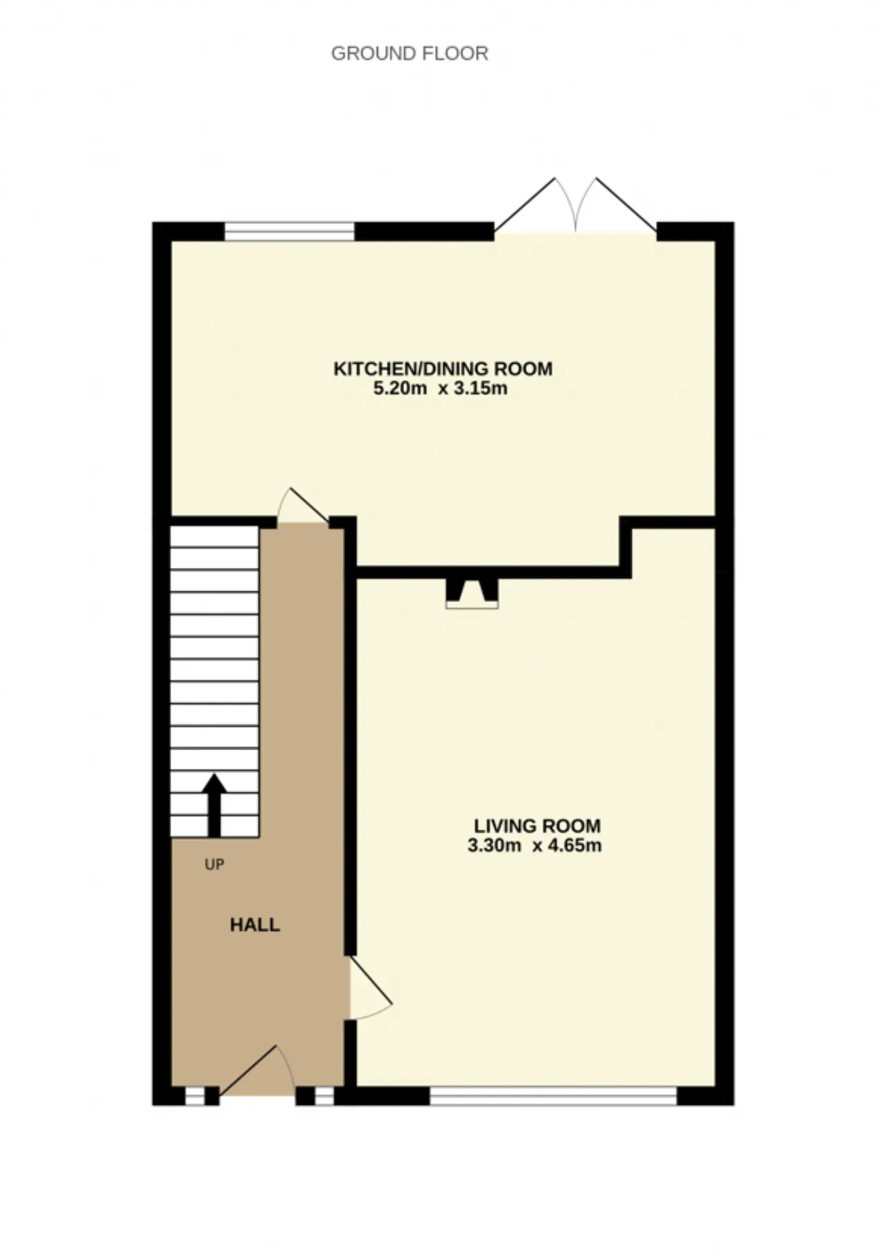 Bedroom 3 3.0m x 2.35m Single bedroom to the front with fitted wardrobe, carpet flooring, and a front-facing window.