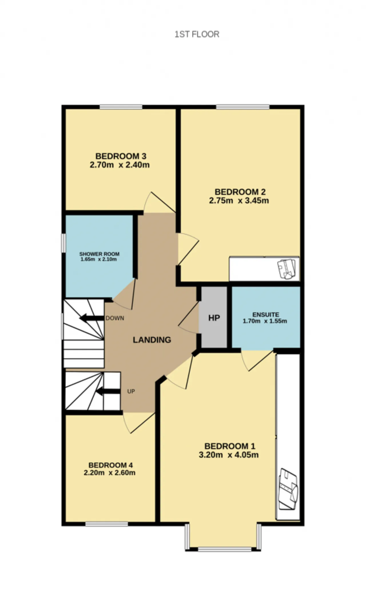 Bedroom 1 3.20m x 4.05m Double to front, built-in wardrobes, box bay window, laminate wood flooring