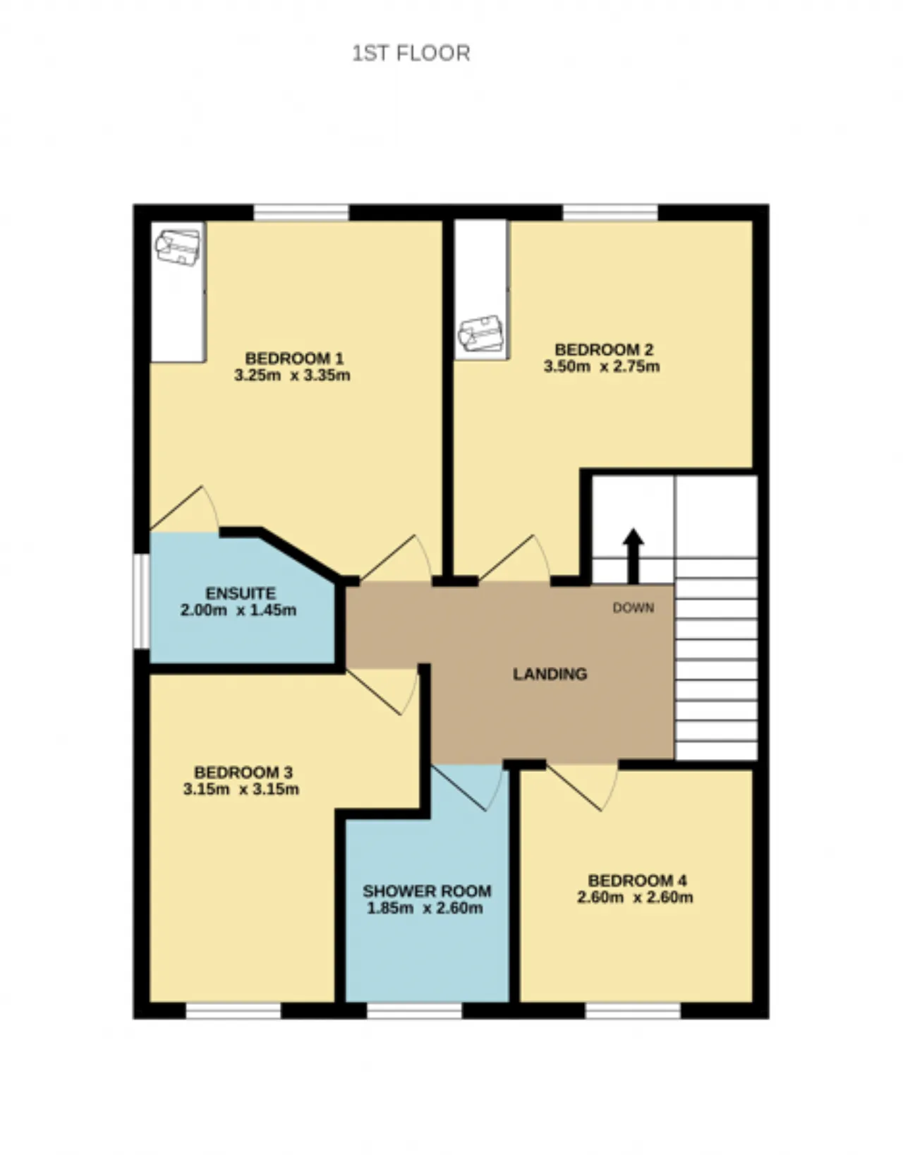 Bedroom 4 (Front) 2.60m x 2.60m Fitted wardrobe, laminated timber effect floor.