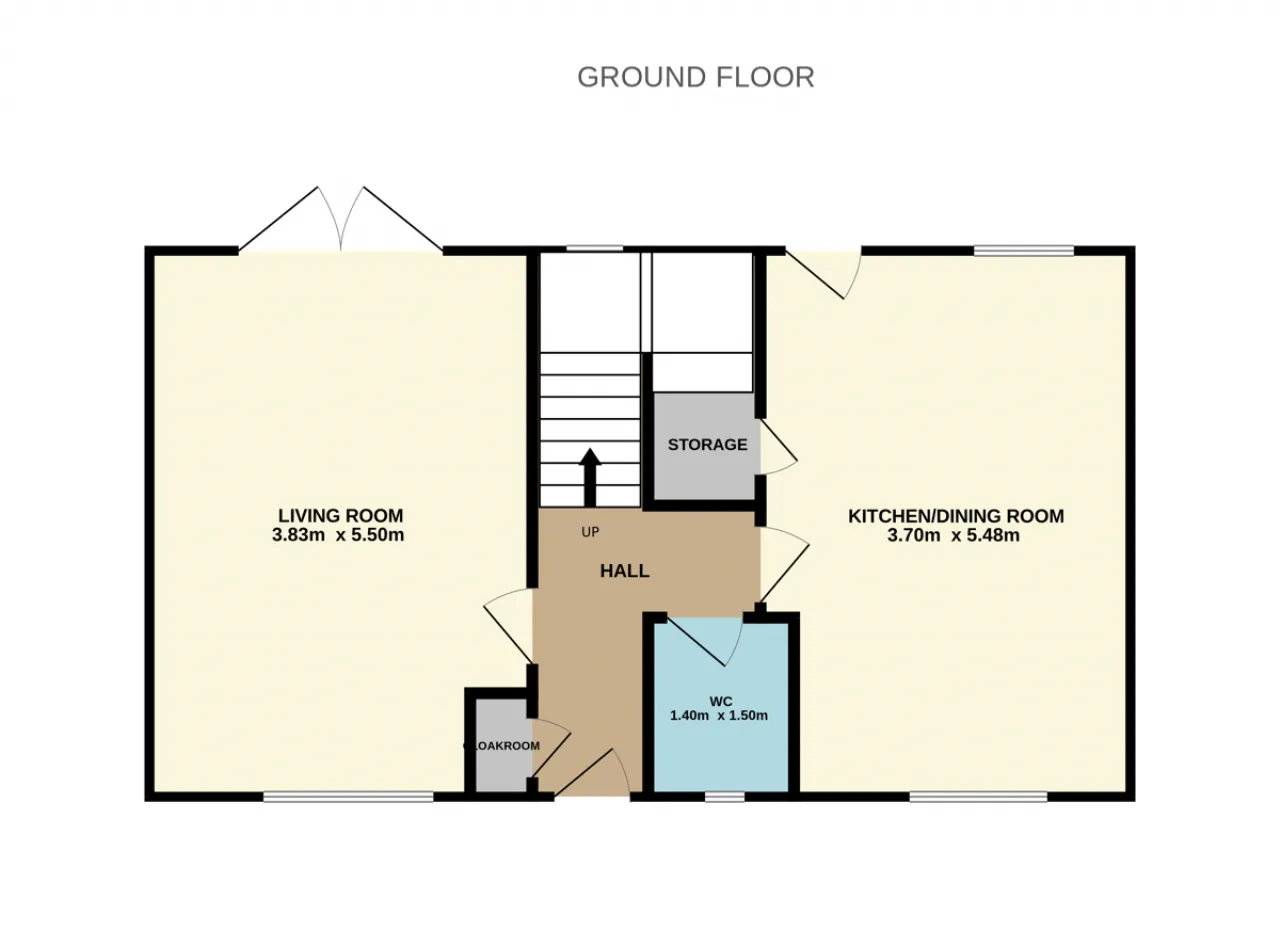 Living Room 3.83m x 5.5m Laminated timber flooring, TV point, access to rear garden.