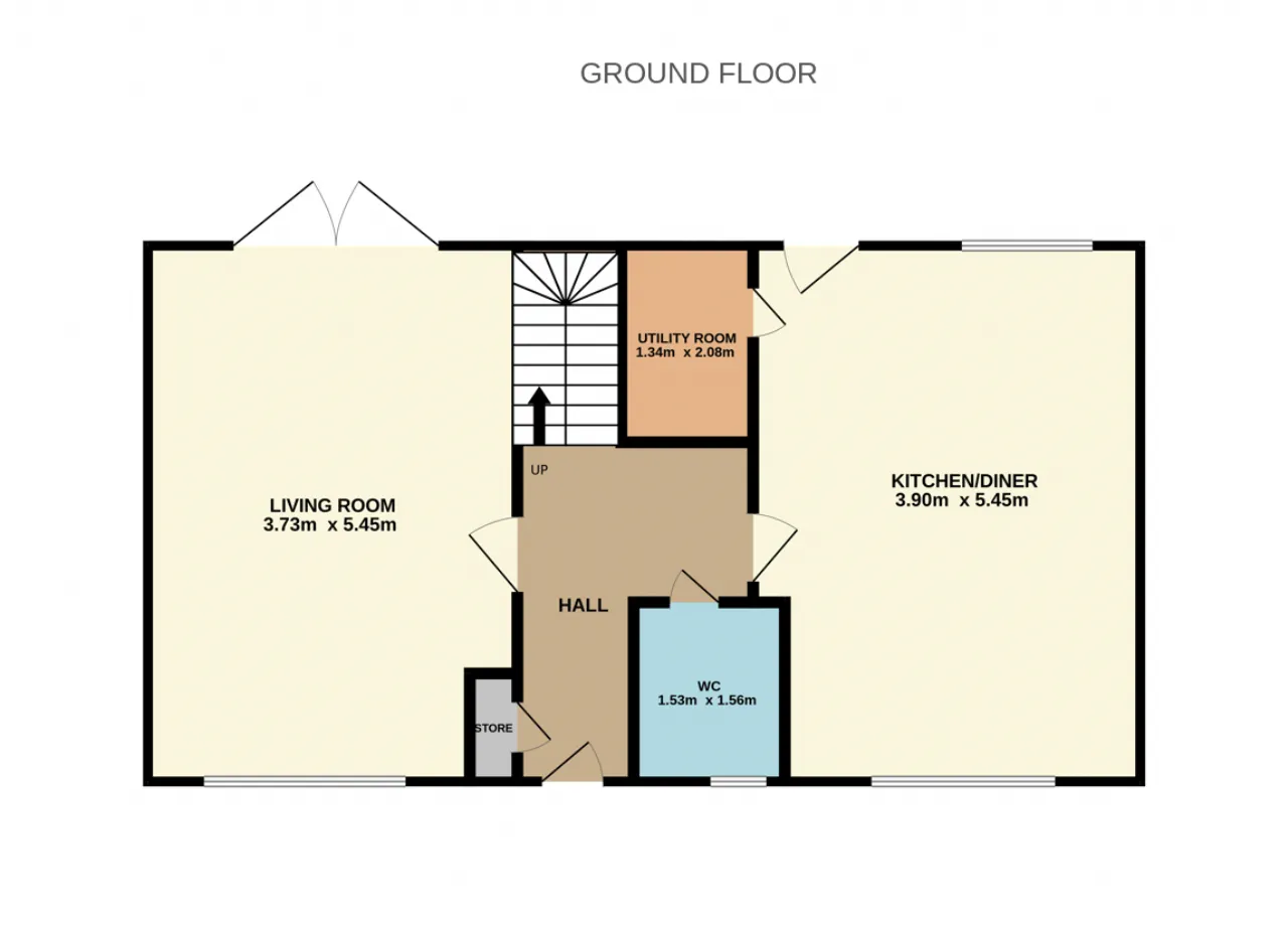 Utility Room 1.34m x 2.08m Good storage area and space for stacked washing machine and tumble dryer