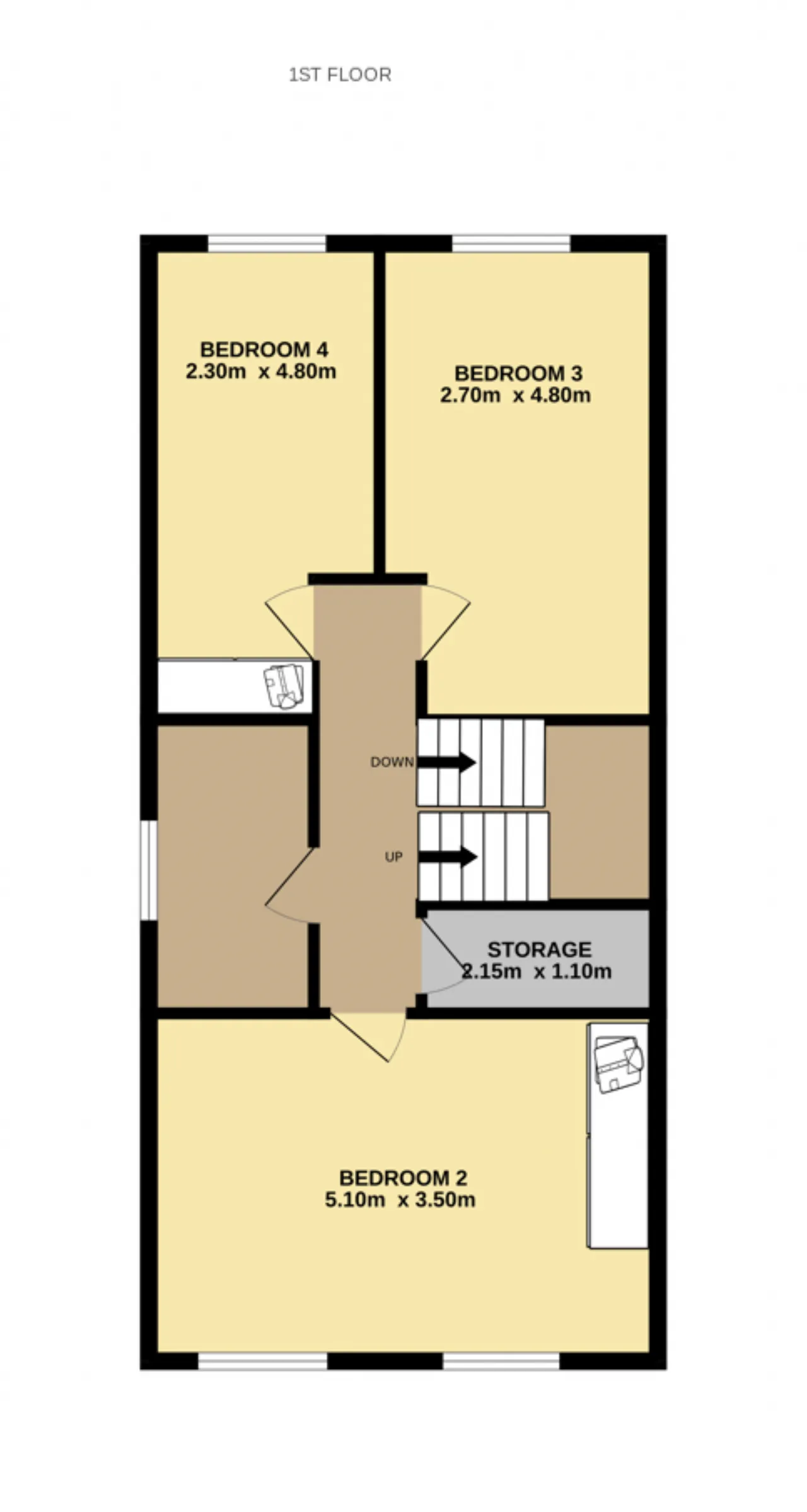 First Floor: Landing with store room, 3 good size bedrooms, and full family bathroom.