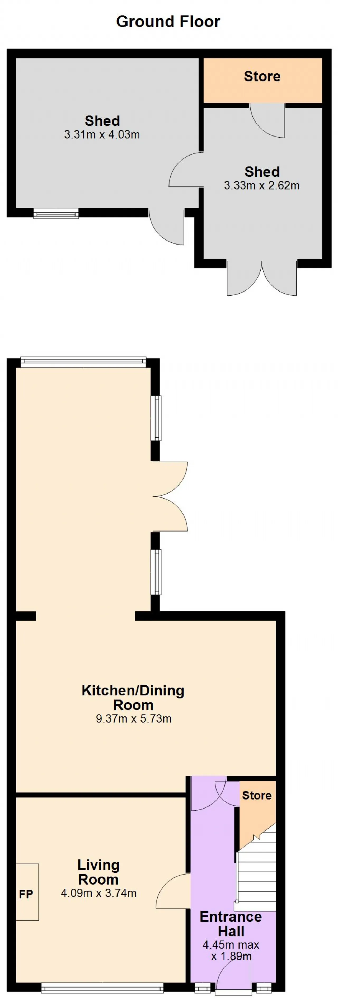 The property is further enhanced by pedestrian side access, off-street parking to the front and a substantial concrete-built outbuilding to the rear, offering excellent storage and future potential, subject to the necessary works and consents.