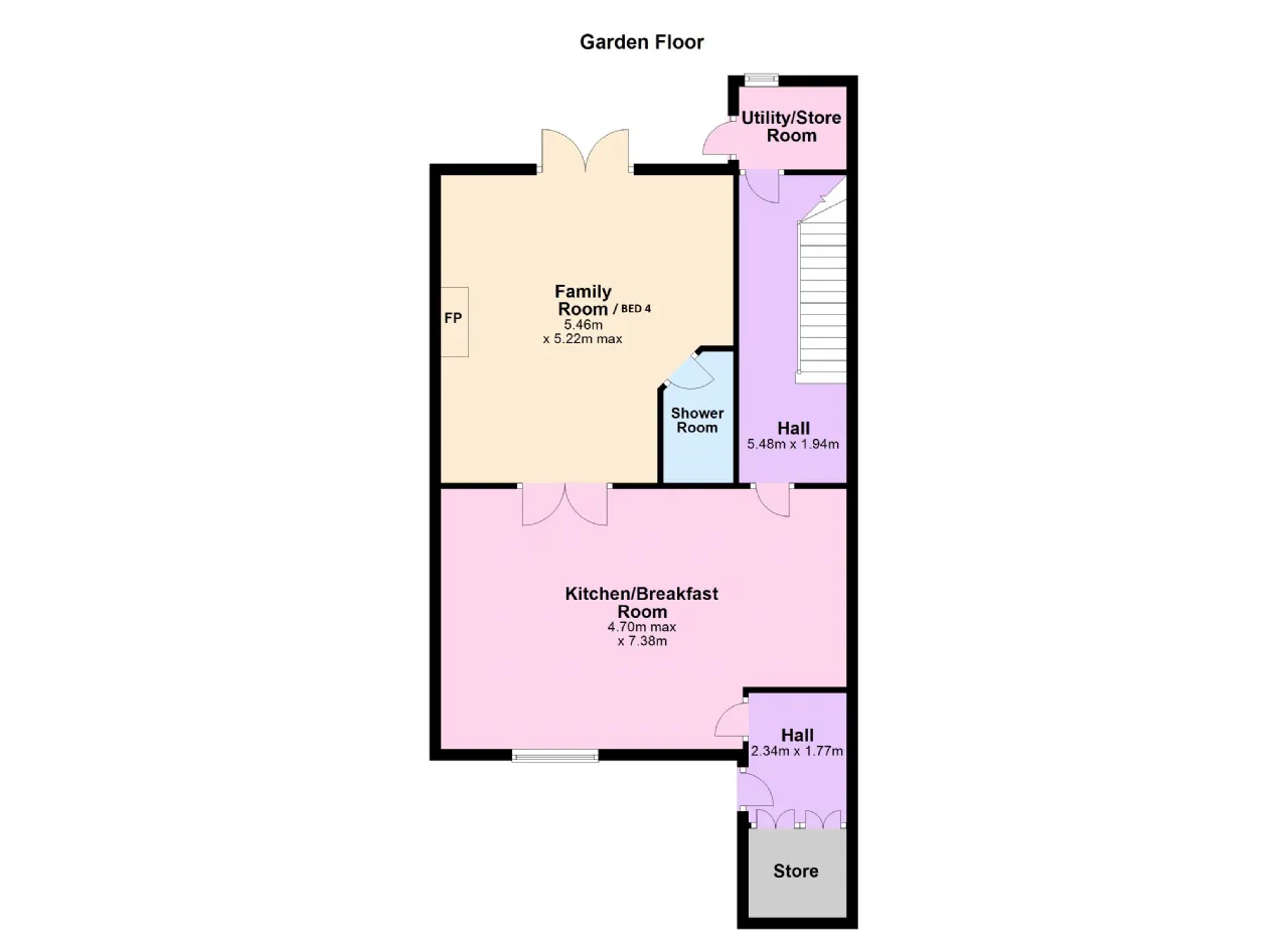 Utility Room: plumbed for washing machine, plus dryer and door to garden.