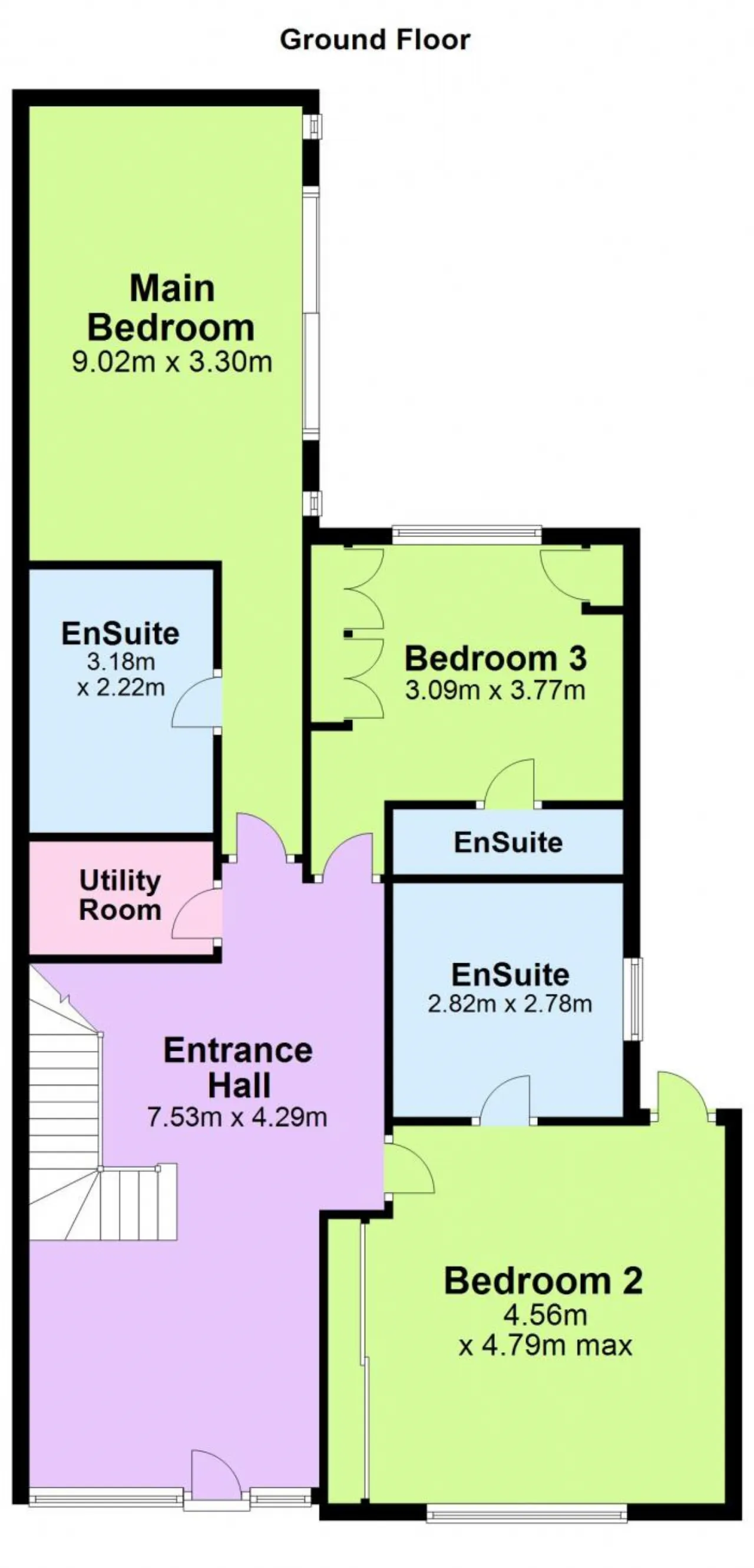 Guest W.C.: with w.c., wash hand basin, fully tiled.