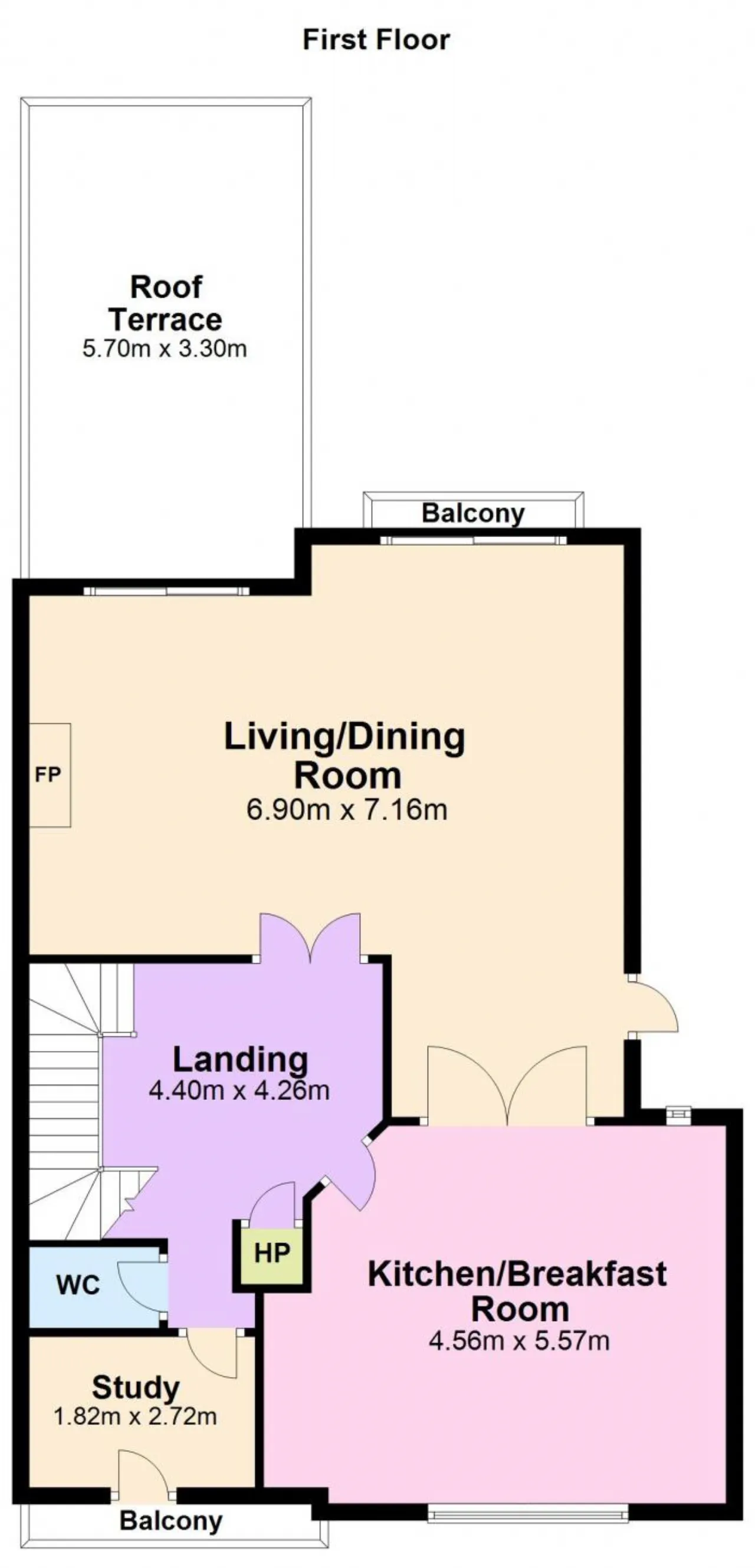Living/Dining Room: this spacious L-shaped room has feature pitched ceiling, oak floor, log effect gas fire, large glazed sliding door leading to a paved flat roof top terrace and patio doors opening out onto a compact Romeo & Juliette balcony.