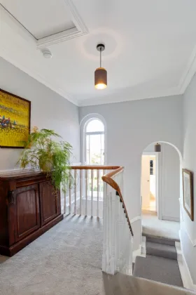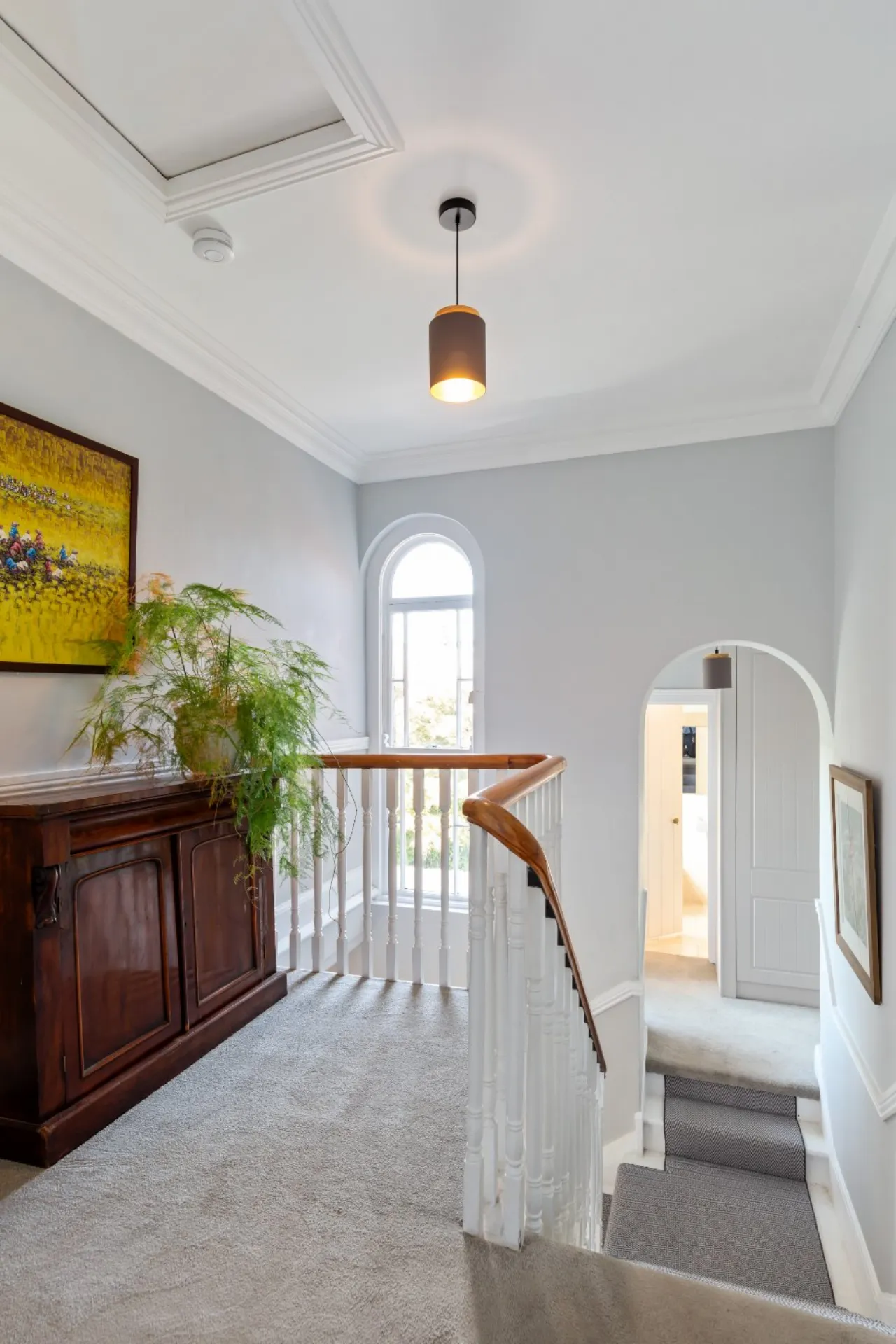 Landing Sliding sash double glazed window, ceiling coving, hotpress, access to the attic.