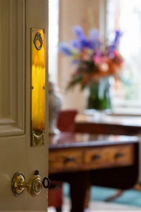 The private gardens of 0.3 acre approx. are another feature of this fine family home. The front garden is screened from the road by mature hedging and is laid out in lawn with a gravelled driveway providing off street car parking for several cars. A garage is also located to the side of the house, along with original garden sheds. A gated side entrance leads to the southwest facing rear garden (140ft x 60ft approx.) which is walled, largely in lawn with mature plants, shrubs and fruit trees and a sunny patio is ideal for al fresco dining.