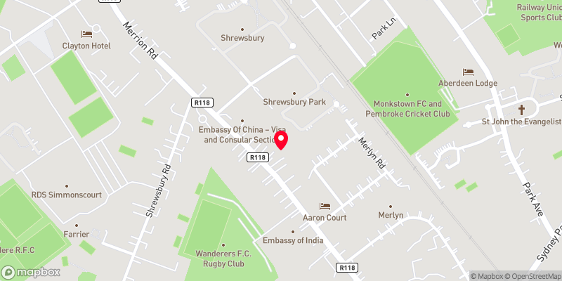 Ballsbridge is a highly desirable Dublin suburb that extends northwards towards the Grand Canal, southwards towards Donnybrook, and westwards to encompass the area around Pembroke Road, Clyde Road, Elgin Road, and Herbert Park. The bulk of Dublin's embassies and many diplomatic residences are located in the southern part of Ballsbridge on and around Ailesbury Road. The RDS has its grounds here, and the Lansdowne Road headquarters of the Irish Rugby Football Union (IRFU) is on the boundary between Ballsbridge and Irishtown. The corporate headquarters of Allied Irish Banks (AIB) are also located in Ballsbridge.