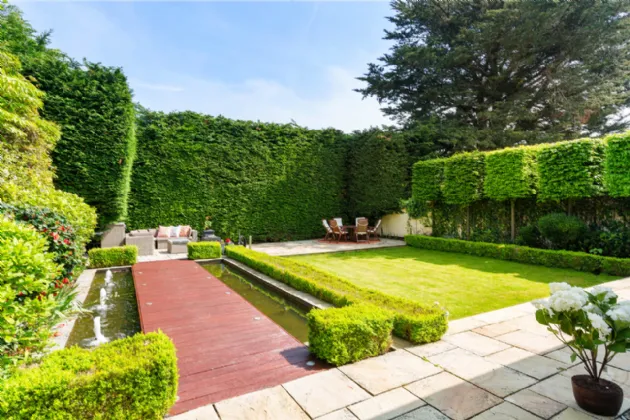 The back garden which is totally secluded due to 15ft high hedging has a paved patio access from the living and breakfast area running the full width of the garden. A timber walkway surrounded by a water feature and fountains leads to one of the 2 patios at the rear of the garden.