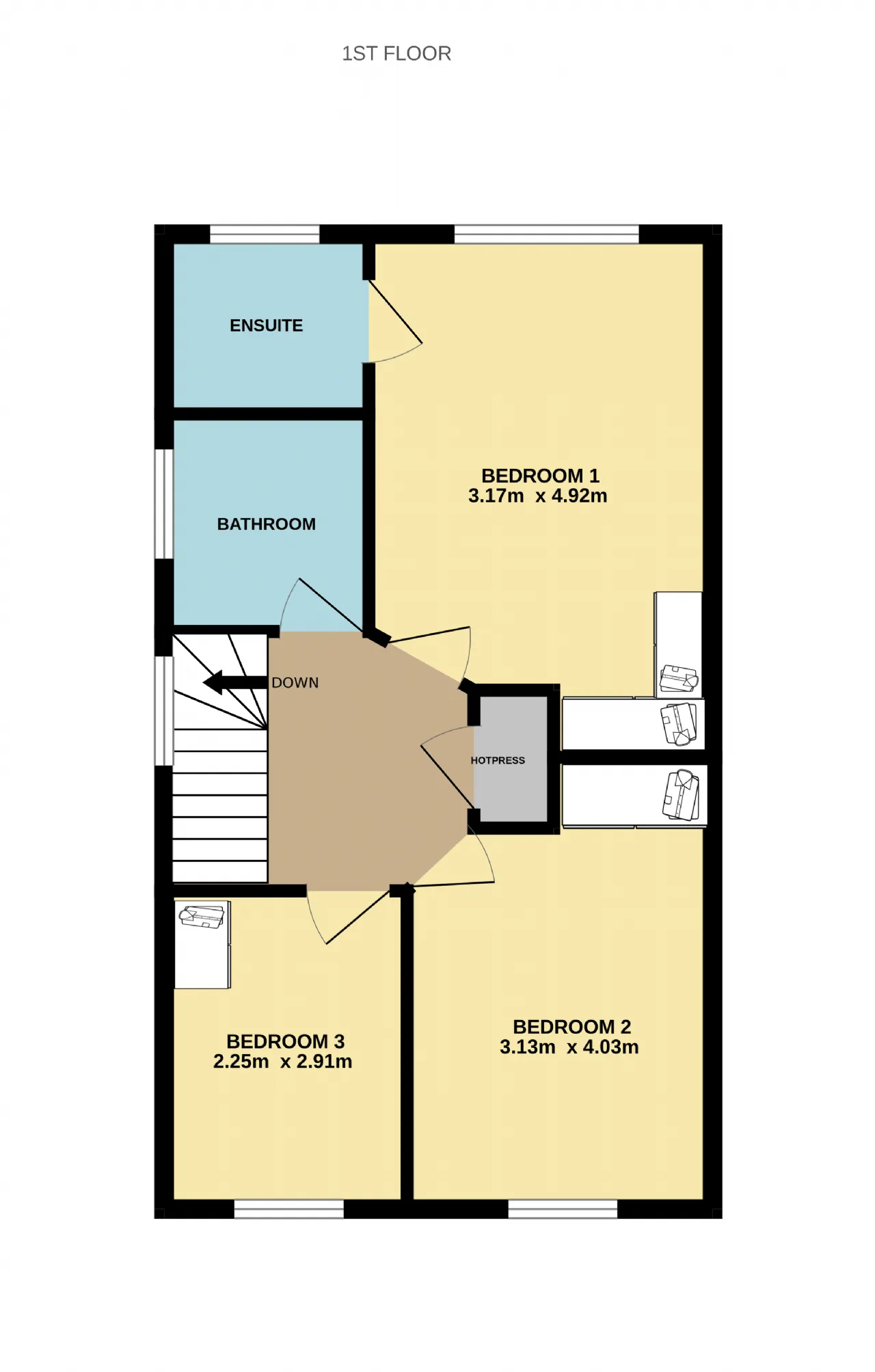 Bedroom 3 2.91m x 2.25m Single bedroom with carpet flooring, fitted wardrobes and window to front.