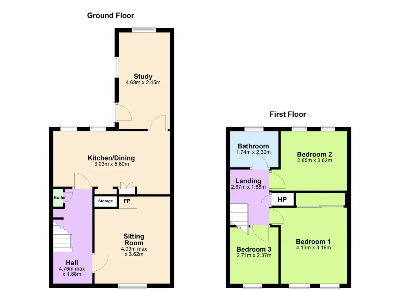Study: A use as you will family room or playroom with two windows overlooking the garden and door onto the rear garden.