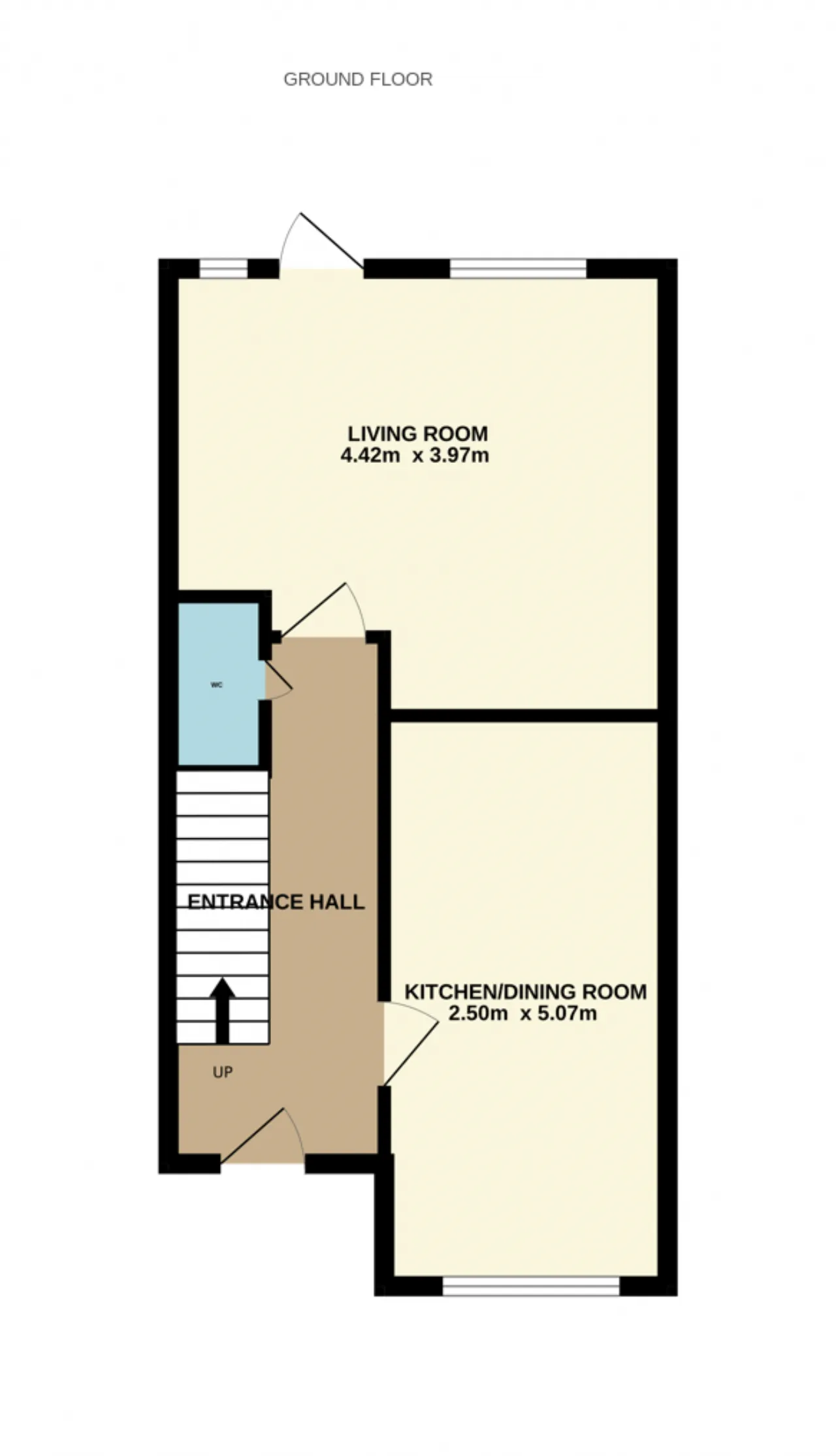 Guest WC 1.03m x 1.53m WC, wash hand basin.