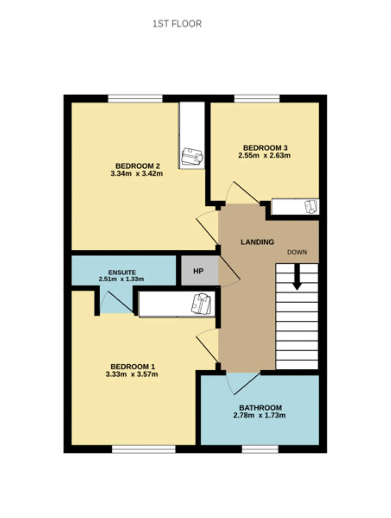 Bedroom 1 Double bedroom with carpet flooring, window to front and fitted wardrobes.