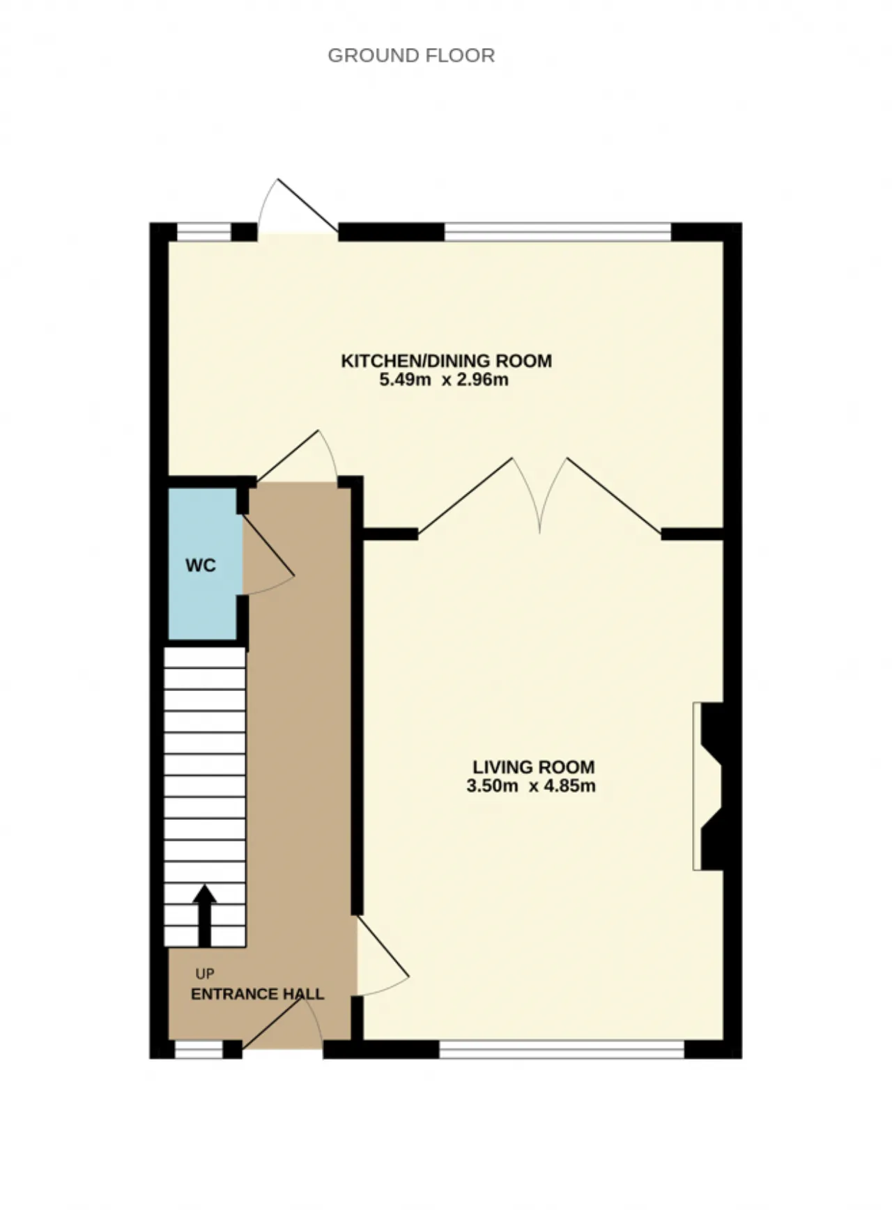 Guest WC 0.84m x 1.66m Solid timber flooring, WC, wash hand basin, wall tile.