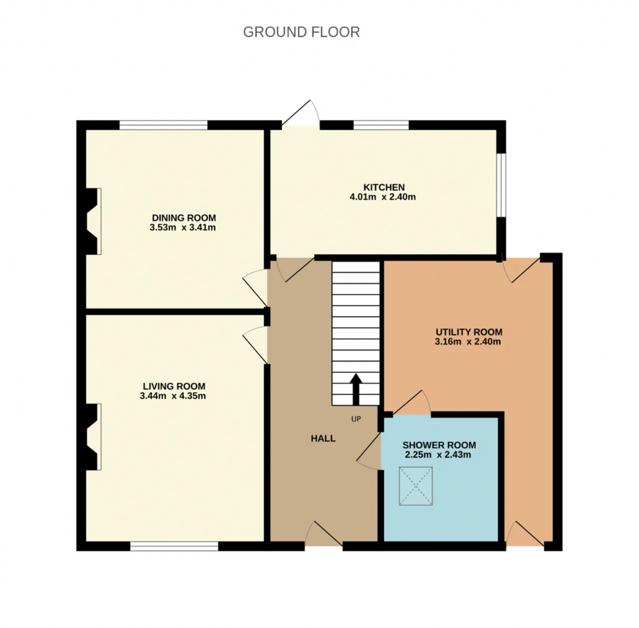 The bright accommodation which extends to approximately 114 sq. meters includes spacious hall, guest shower room, utility room, front living room, dining room and kitchen to the rear. Upstairs there are two double bedrooms and a large single room and a generous-sized bathroom. To the front the walled front garden has off street parking and access through the garage into the sunny back garden. There is plenty of colourful mature shrubbery and trees on its walled boundary together with a manicured lawn and beyond the garden there is a tree filled green area making this location very private and serene.