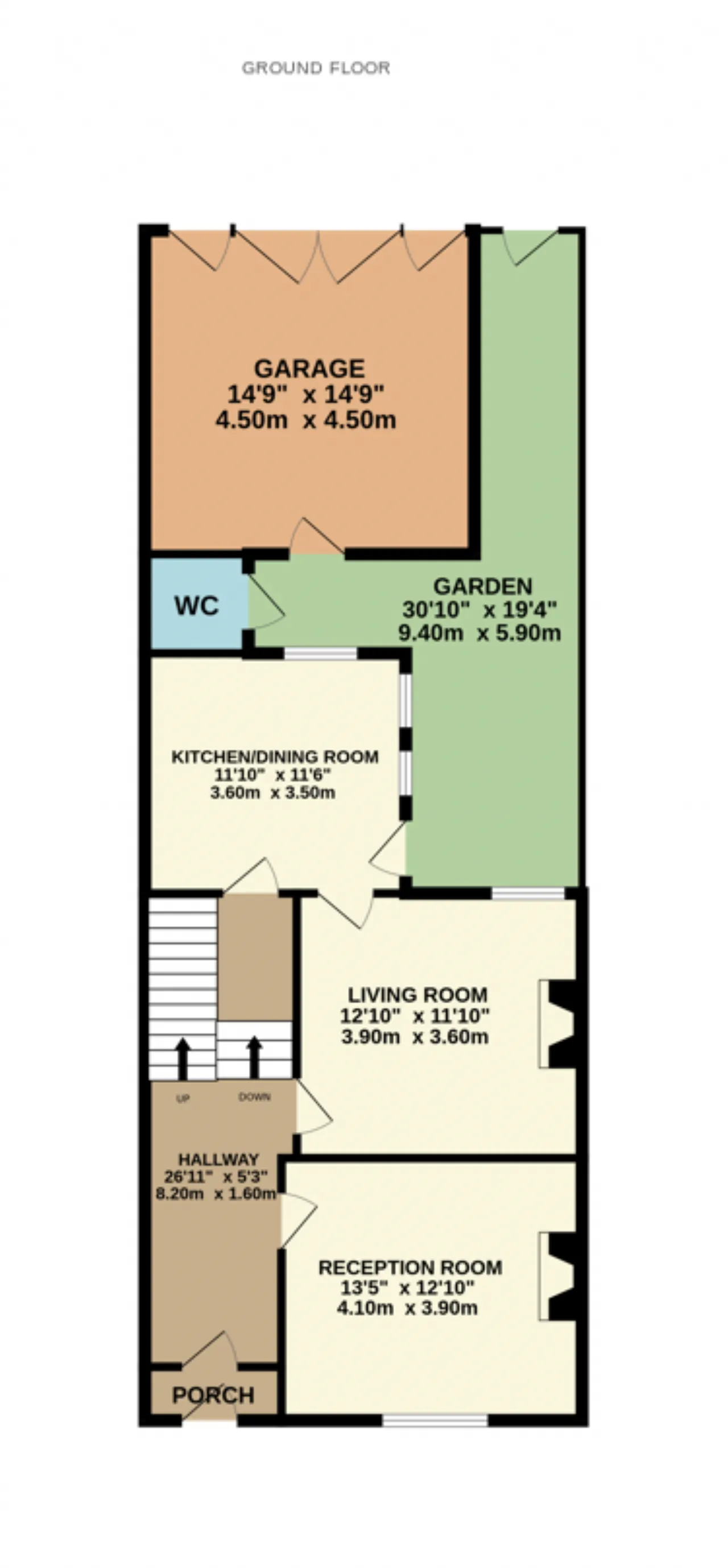 Garden 5.9m x 9.4m A delightful south-facing garden, perfect for enjoying sunlight throughout the day. Features include a paved patio, direct access to the rear laneway and convenient outbuildings including a garage and outdoor WC.