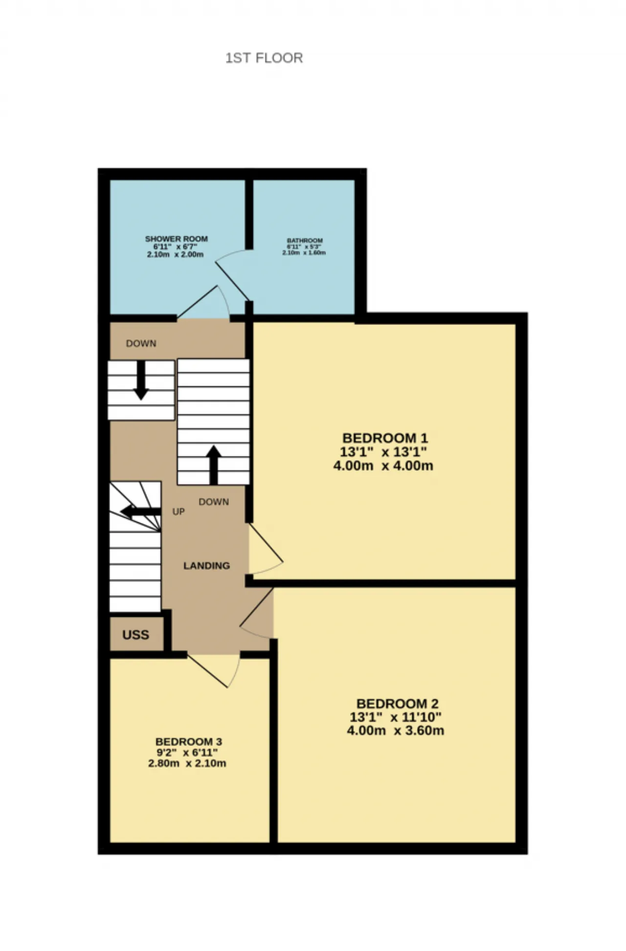 Bedroom One 4.0m x 4.0m A generously sized double bedroom featuring carpet flooring, decorative coving, a classic ceiling rose and a traditional dado rail. A charming cast iron fireplace serves as a focal point, while the gas boiler is also located within this room.
