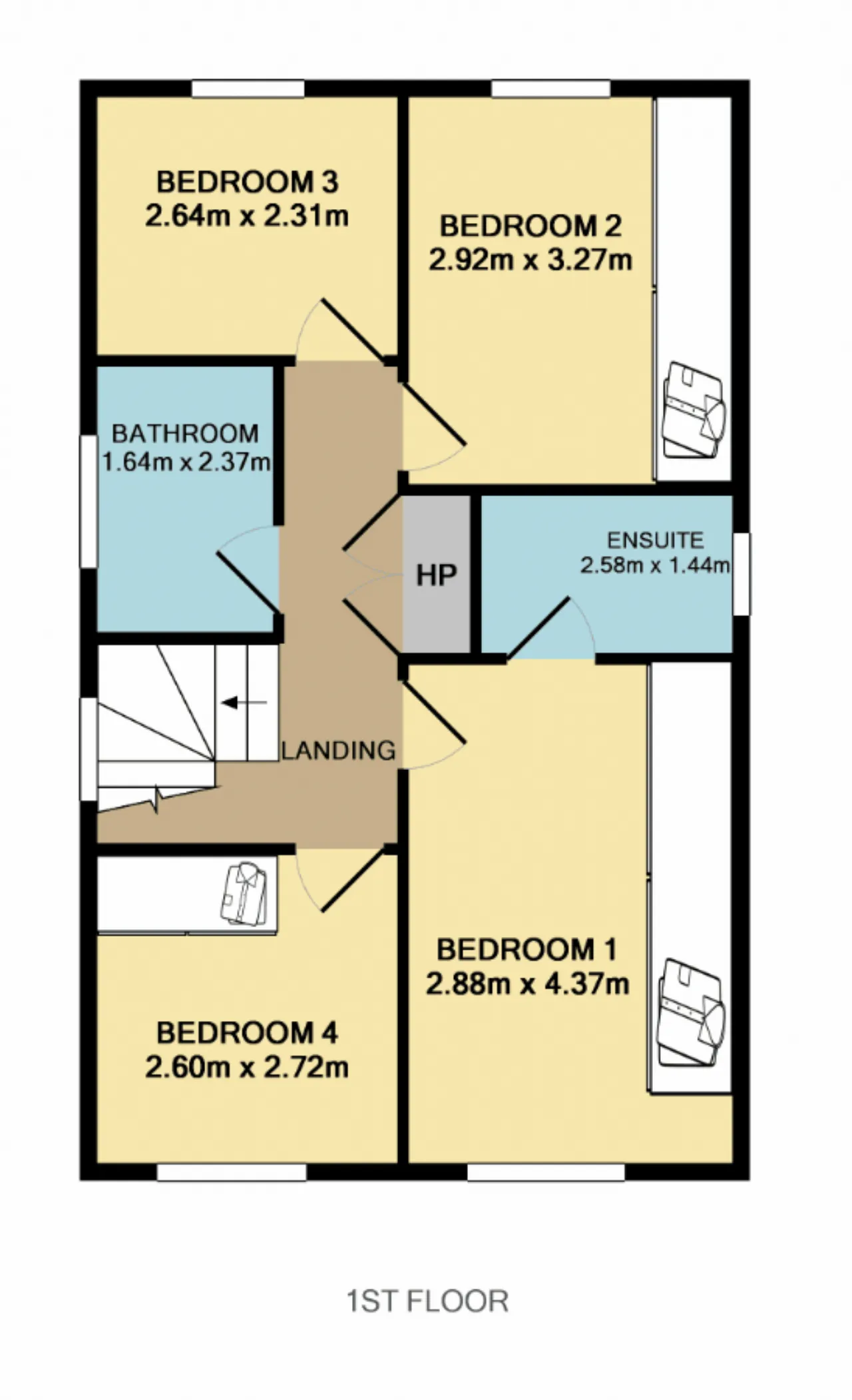 Bedroom 4 2.60m x 2.72m Single room to the front with built in wardrobes