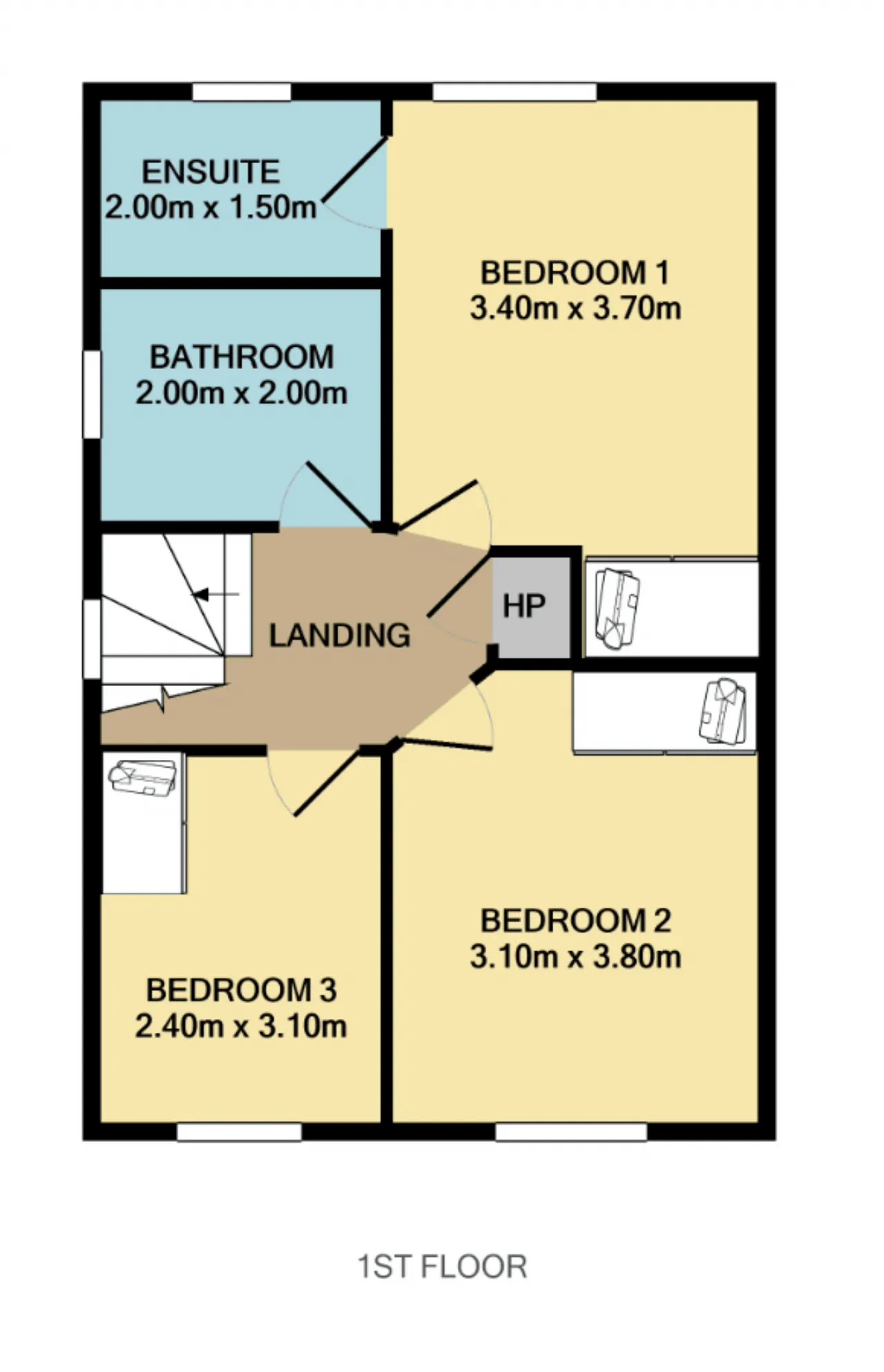 Bedroom 3 2.40m x 3.10m Single bedroom with carpet floor and built in wardrobes