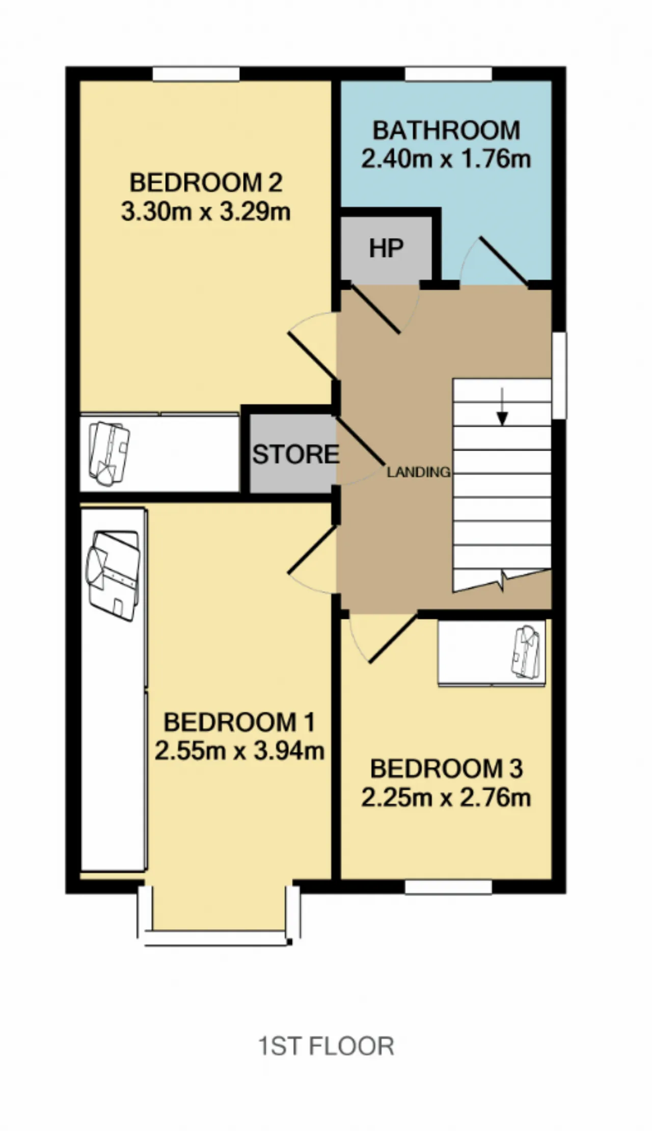 Bedroom 3 2.25m x 2.76m Single bedroom to the front with carpet flooring and built in wardrobes