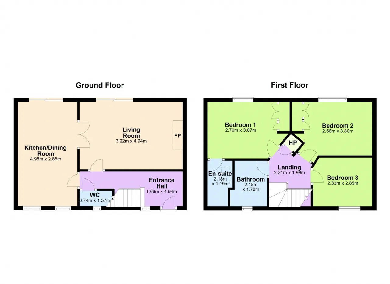 Guest WC 0.74m x 1.57m Understair wc with tiled flooring, wash hand basin, wc, and wall hung mirror. Circular feature window.