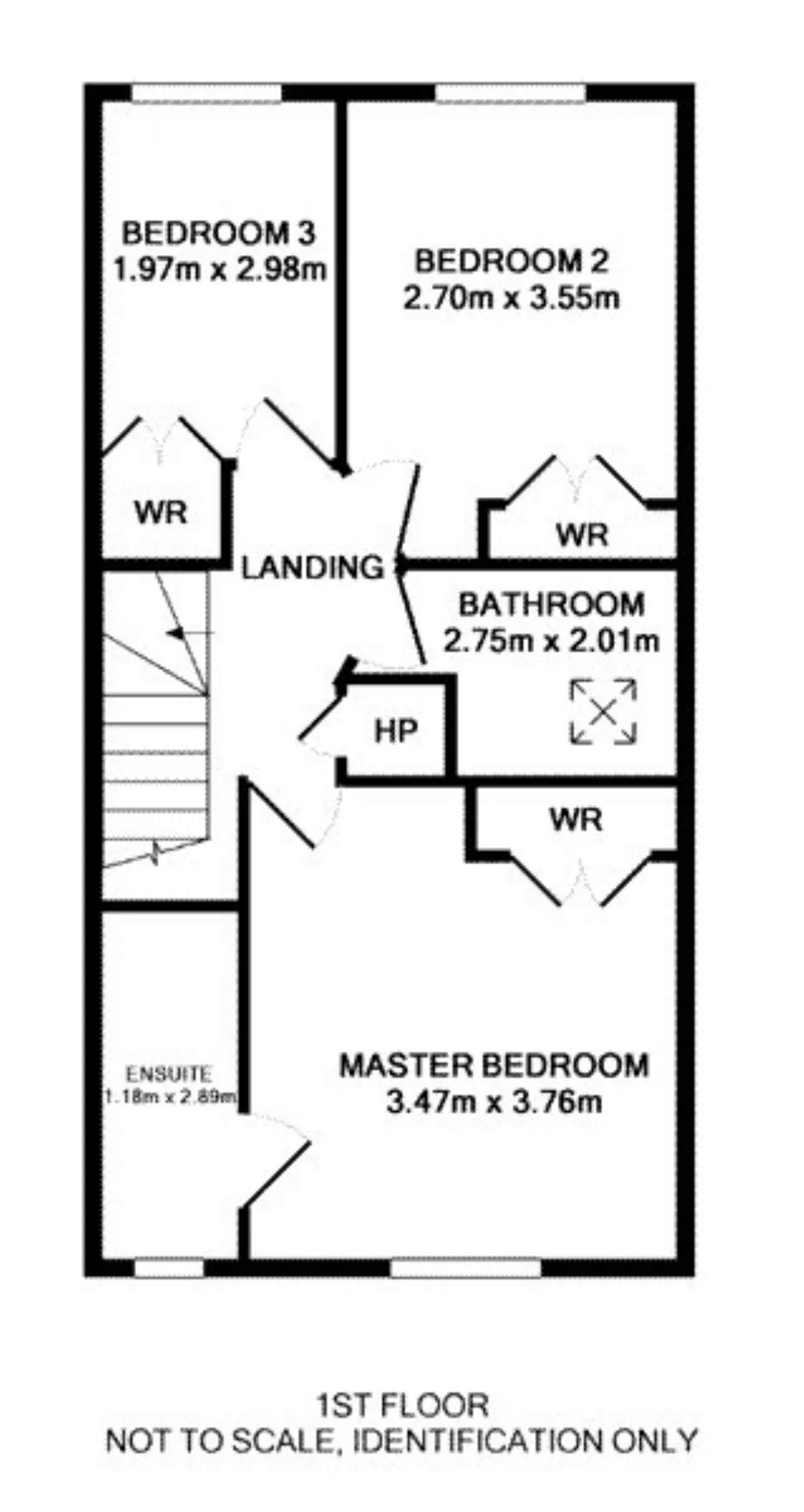 Bedroom 1 3.47m x 3.76m Large double bedroom with built in wardrobes overlooking the front.
