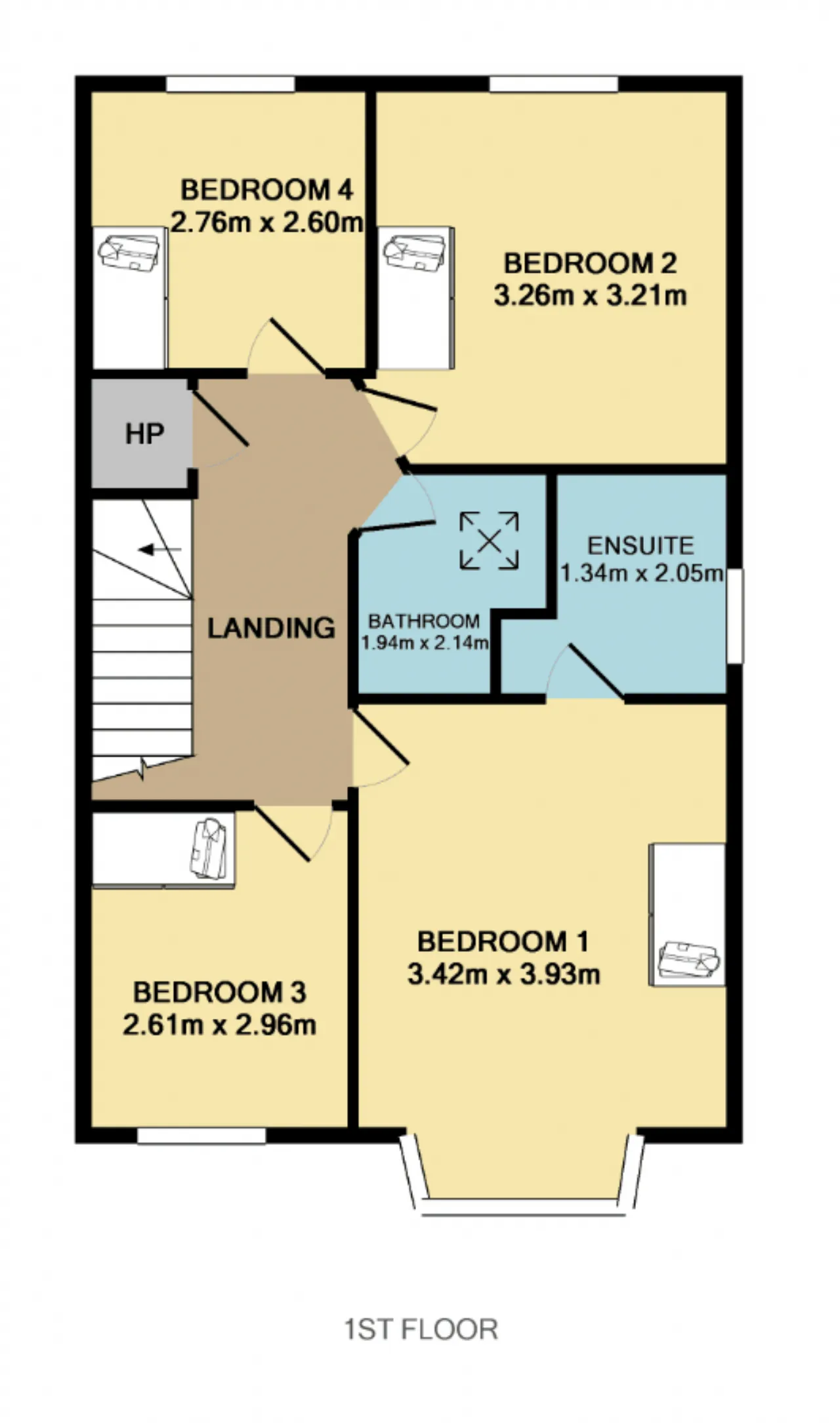 Bedroom 1 3.42m x 3.93m Large double room with carpet floor, located to front with range of built in wardrobes and bay window.