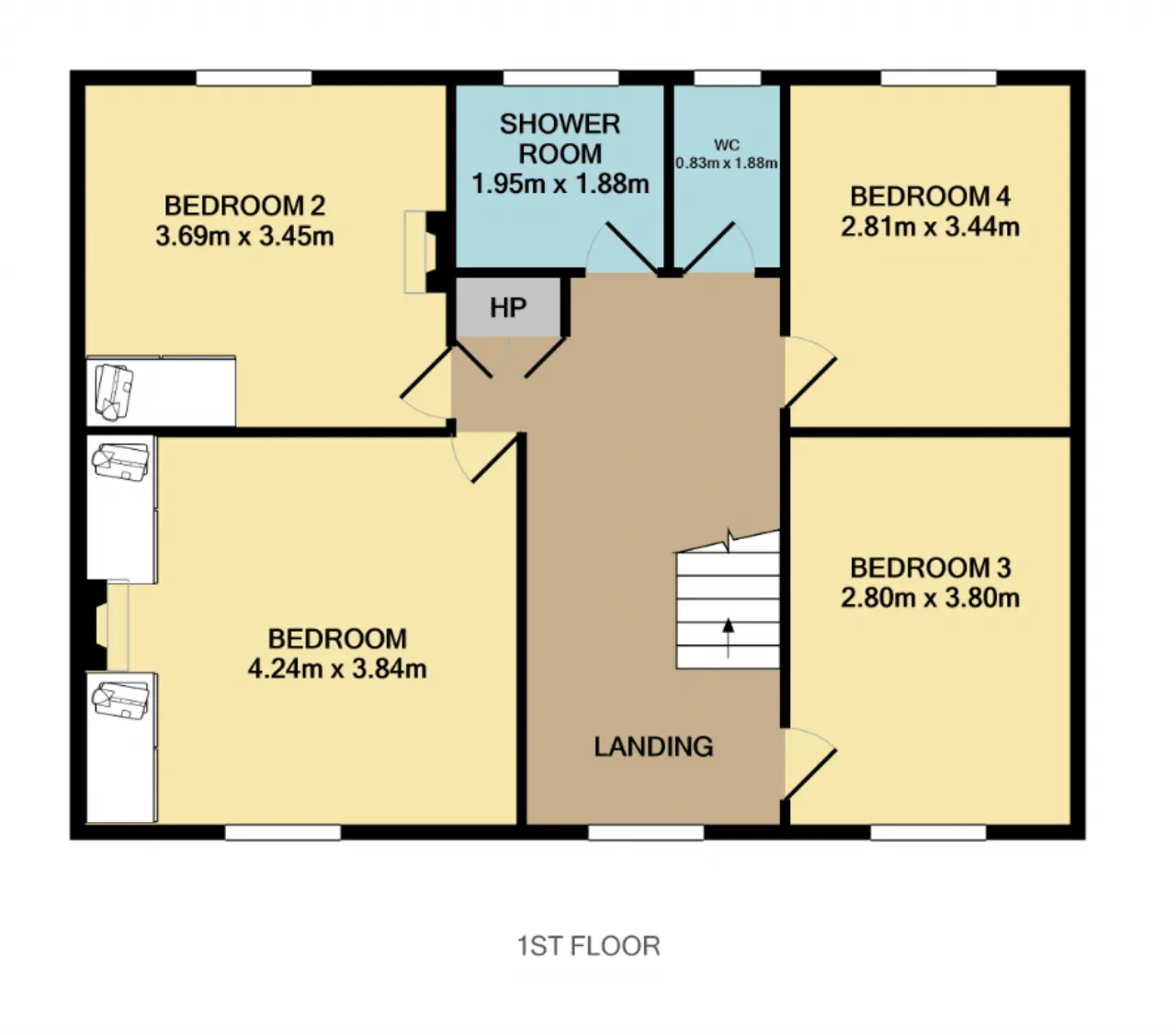 Bedroom 4 2.81m x 3.44m Double bedroom to the rear with lino floor