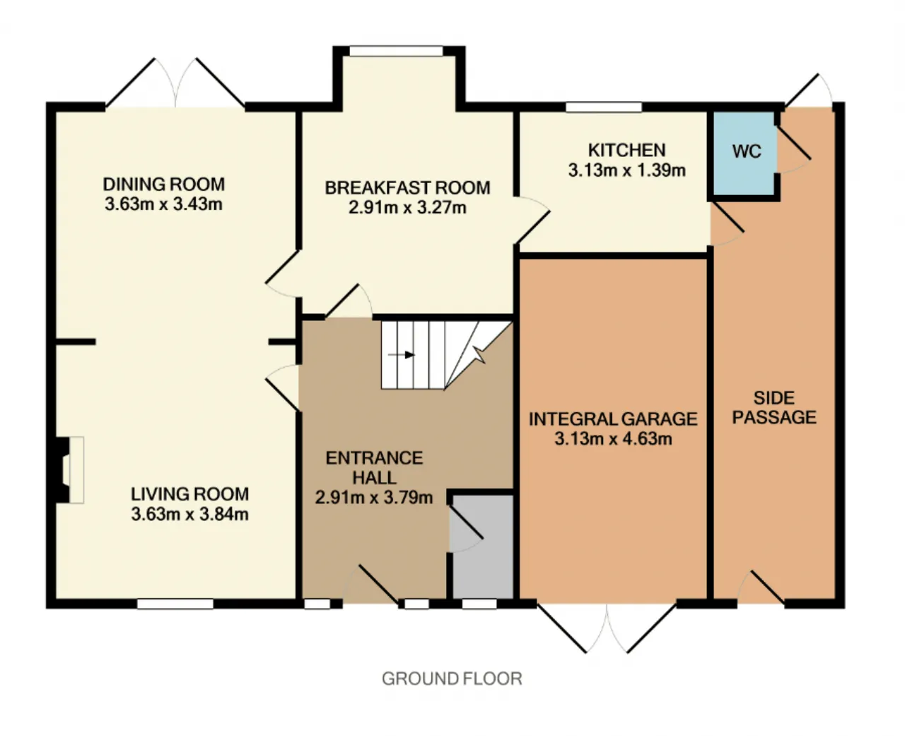 Side Passage not included in floor plan, with wc and utility area and gates to front and rear gardens