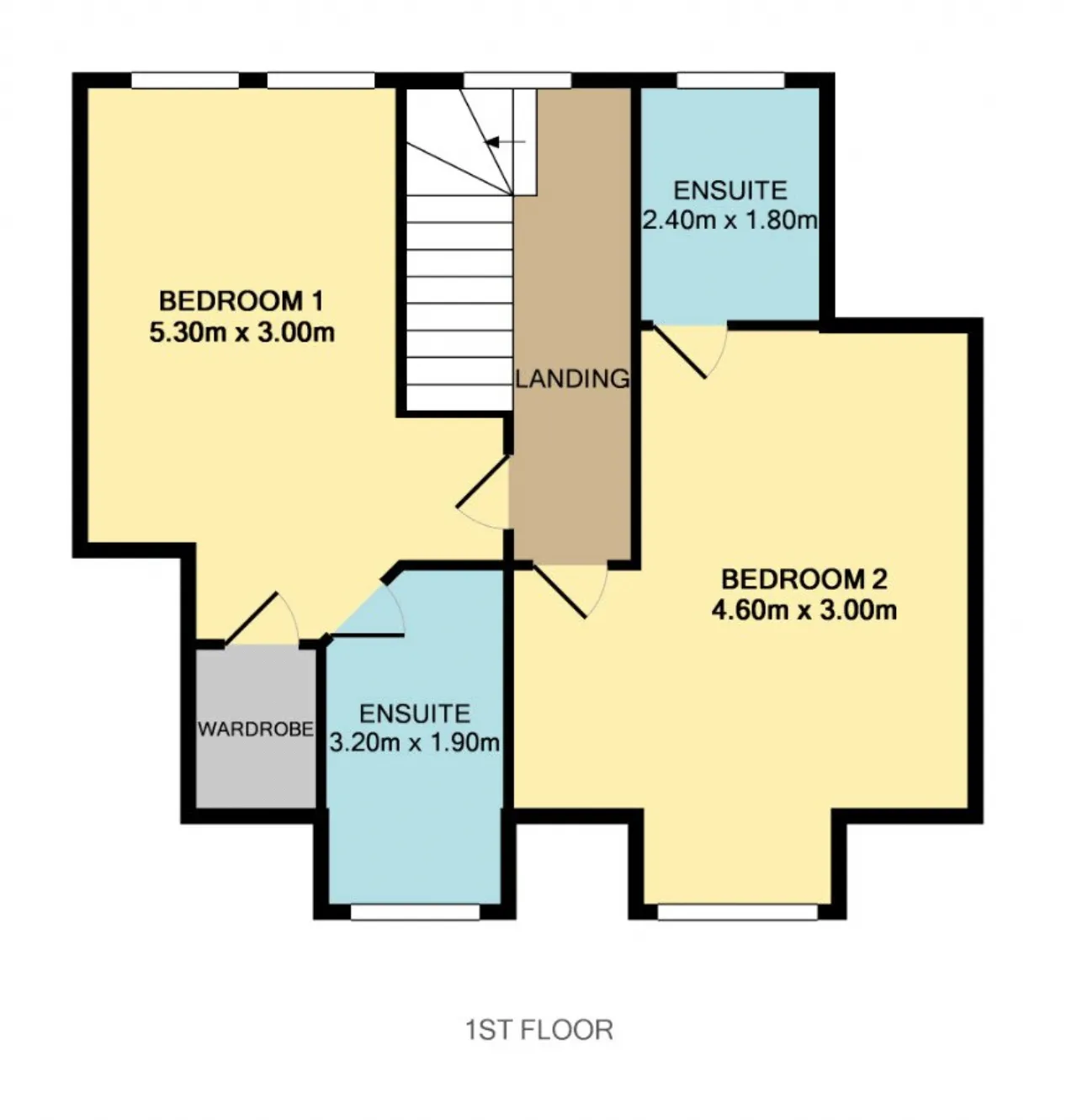 Bedroom 1 5.3m x 3.0m Spacious double bedroom overlooking the garden with carpet floor, walk in wardrobe and views to Dublin Bay.