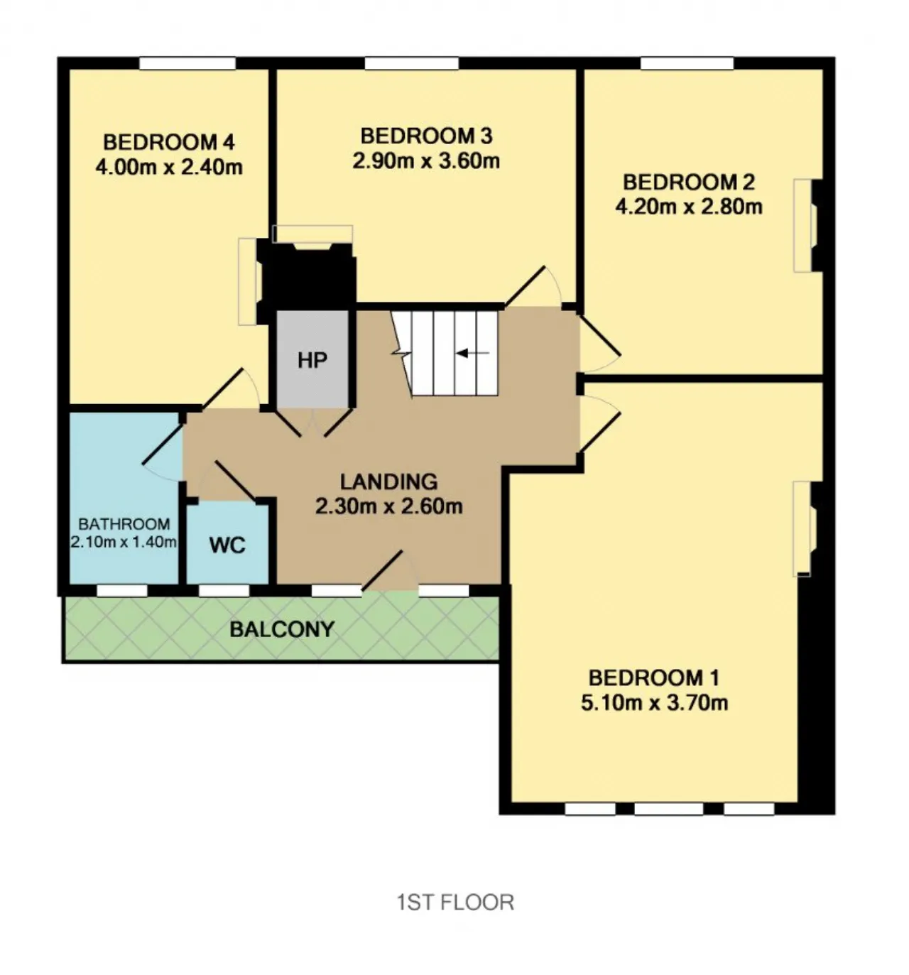 Bedroom 3 2.9m x 3.6m Main, bright double room to the front with attractive fireplace, wash hand basin and extensive range of built in wardrobes.