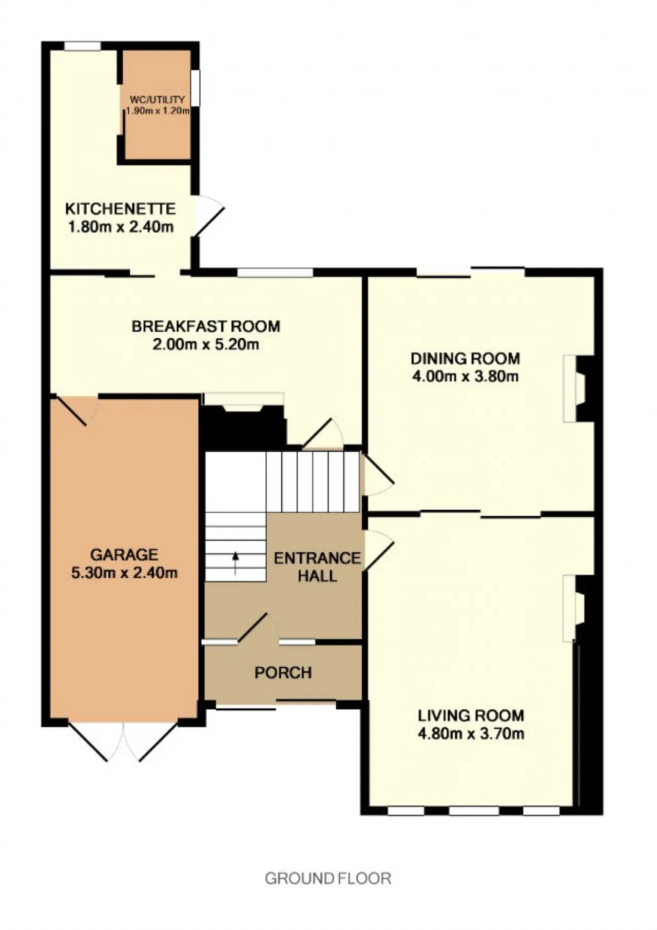 Breakfast Room 2.0m x 5.2m With fireplace with fitted gas fire, fitted dresser, window overlooking rear garden. Door to garage. Sliding door to kitchenette.