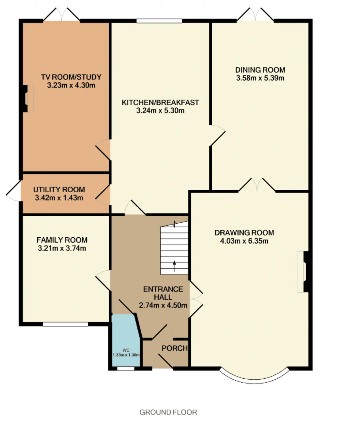 Family/ TV Room 3.21m x 3.74m Lovely room to the front with window overlooking the front garden