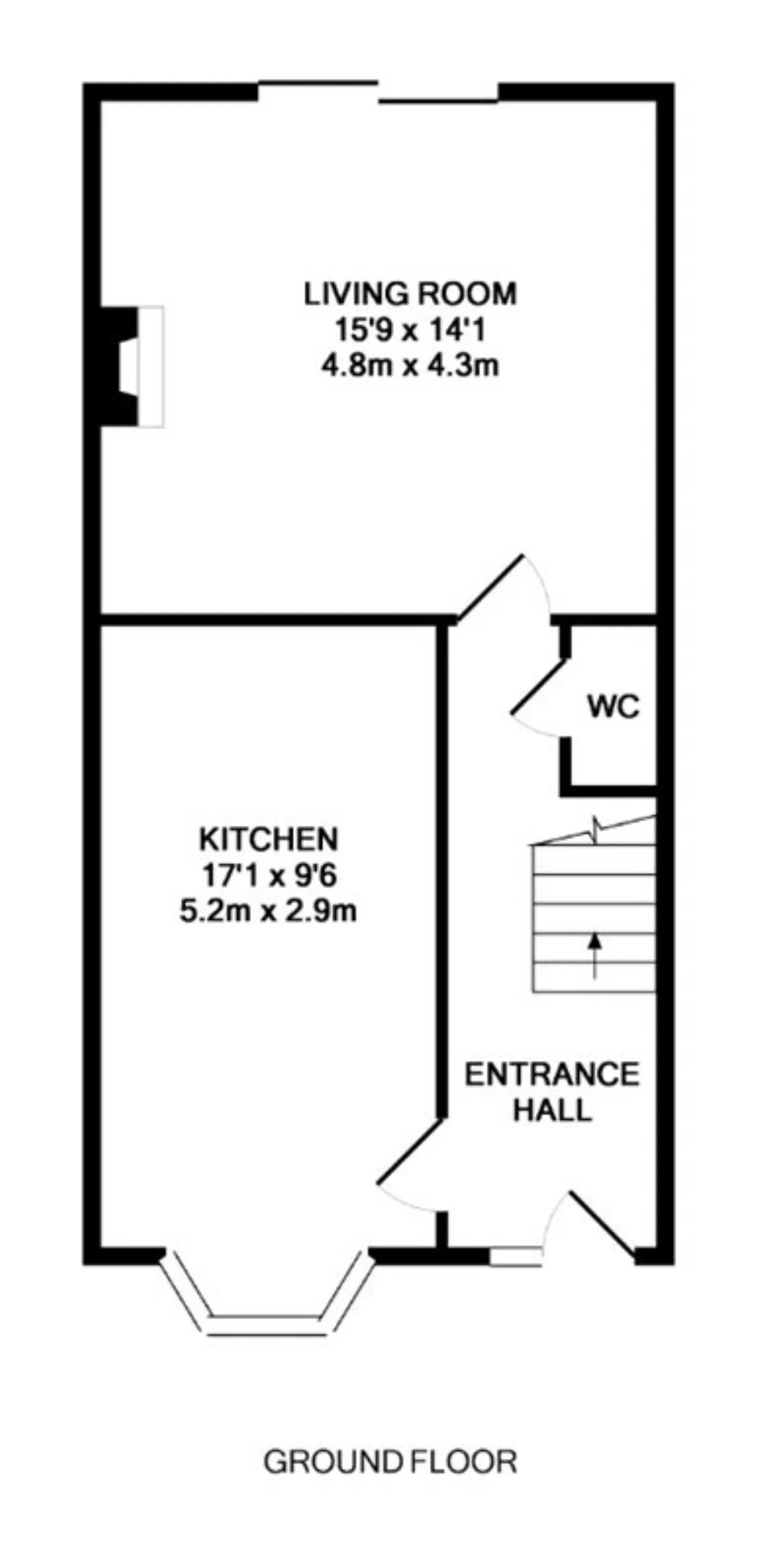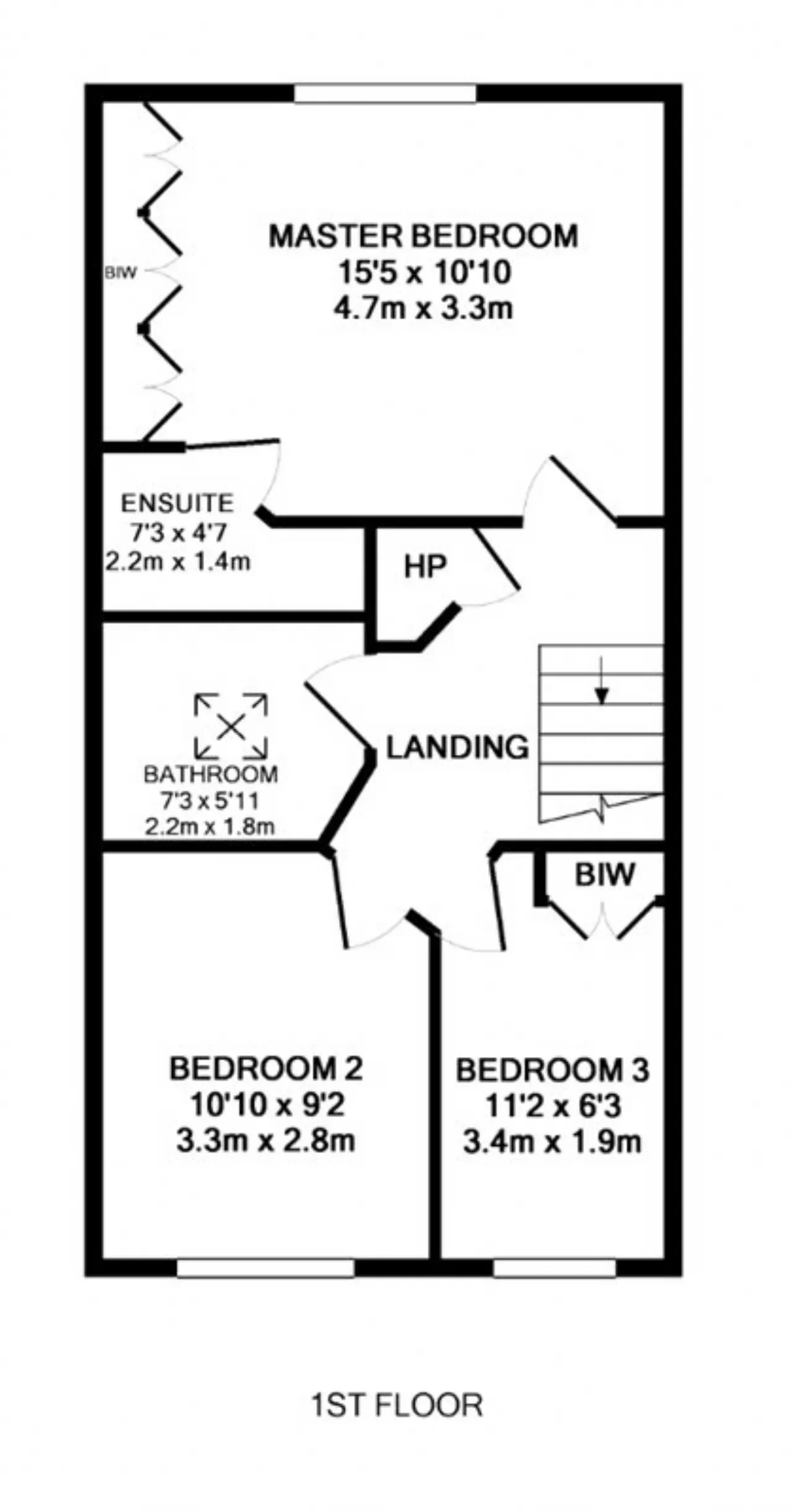 Bedroom 3 3.4m x 1.9m Single bedroom to the front with built in wardrobes.