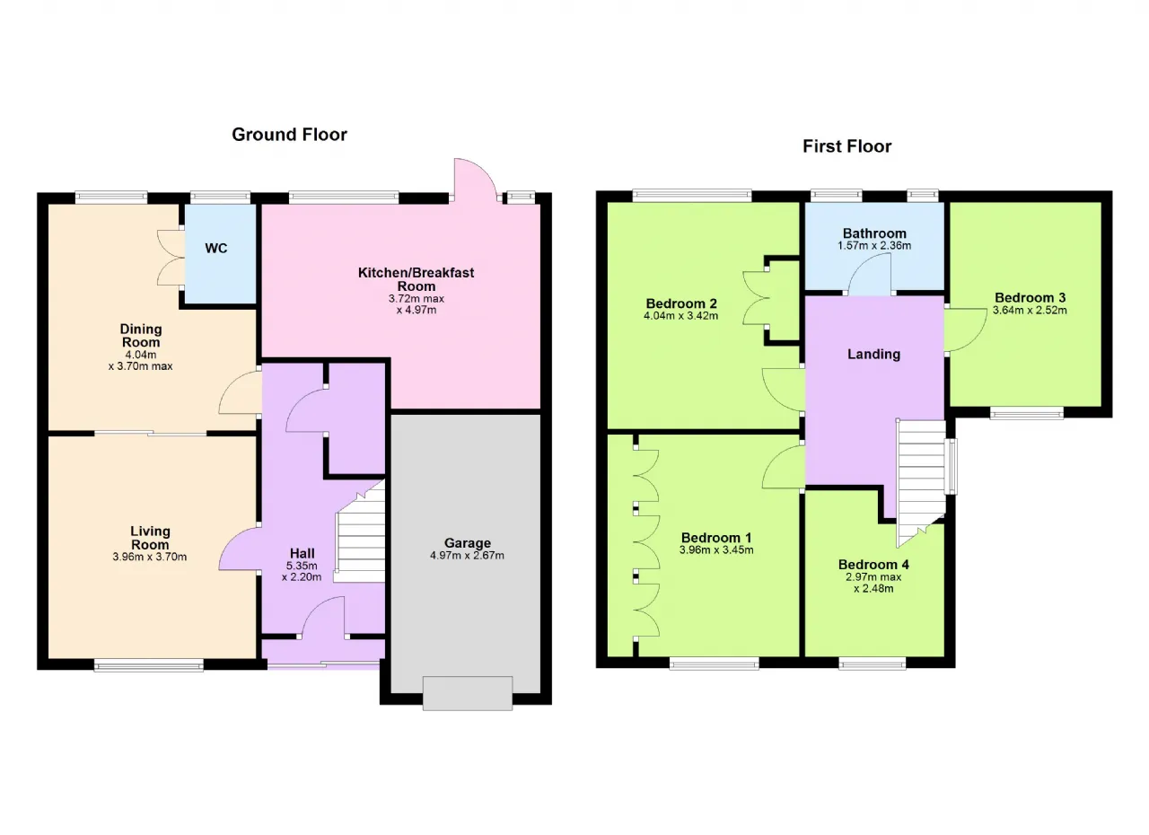 Bedroom 4 2.97m x 2.46m With fitted wardrobes & sink. Window overlooking the front