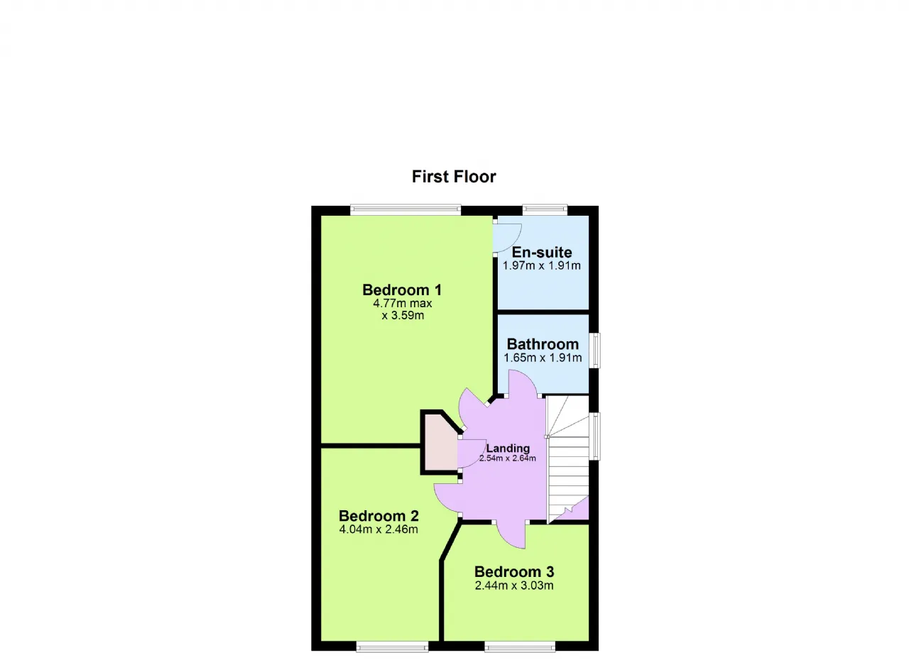 Bedroom 1 4.77m x 3.59m Large double bedroom, carpet flooring, fitted wardrobes, window to rear, door to