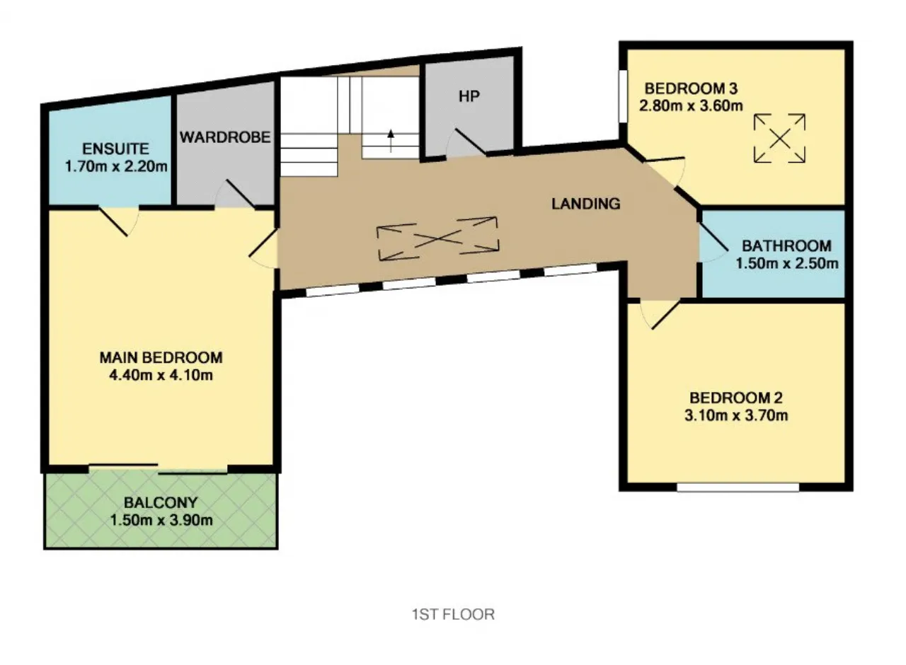 Main Bedroom 4.4m x 4.1m Exceptionally large double bedroom with walk in wardrobe and sliding doors to the balcony.
